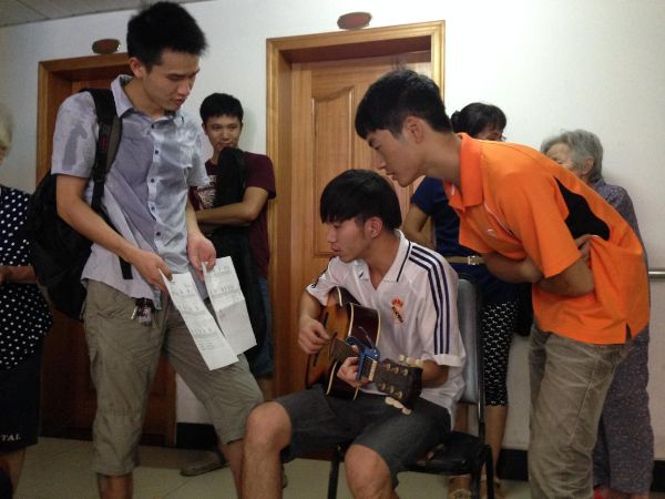 这次暑期社会实践的主题是“践行群众路线,为敬老院老人送温暖”。在灿烂的阳光下,我们手提着大袋小袋的水果来到了台江老人公寓敬老院。一开始,我们先去院子里帮忙拔草,以方便老人们出来活动,在大家齐心协力下草很快就被我们消灭了。接着,我们带着用盘子装好的水果上楼看望老人,老人们对我们的到来感到非常高兴,亲切地拉着我们的手进行交谈。我们分成两个小组把水果分发给老人,看到他们吃得那么甜,我们的心里也暖暖的,并关心地询问了老人们的食宿、健康等情况,同时帮助他们做了些力所能及的事情。经过跟老人们交谈后,我们得知,孤寡老人,由于没有儿女亲人的陪伴,精神上难免有寂寞之感,对生活也感到索然无味。我们表示,以后只要有空将经常来看望他们。许老师也和老人们进行了亲切地聊天,让老人们内心倍感温暖,感到“不是亲人胜似亲人”。之后,多才多艺的树洪同学还为老人们进行了吉他表演,小小的活动厅里顿时充满了无限的欢乐和喜悦。两个小时的活动很快接近尾声,最后,我们依依不舍地和老人们进行告别。