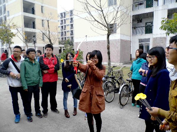 大赛还未开始,现场已经是比肩接踵了。此次大赛一共有63支队伍参赛,每支队伍3人。主持人开场宣布比赛规则后,同学们便迫不及待地来到自己的比赛项目的场地。此次射击大赛一共有三个项目,分别是弓箭射击、粘球射击以及飞镖射击。楼委会进行了认真的组织和准备,各位同学积极参与此次大赛。射击的惊险与刺激,令现场同学时不时爆发出一声尖叫或者大笑声。最后,范俊与黄心怡的队伍分别获得了一等奖。