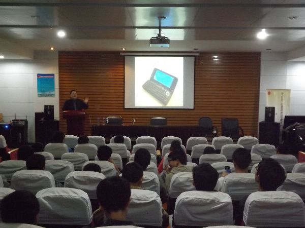 王老师以一段幽默诙谐的开场白让同学们进入了轻松、愉快的气氛中。接着,他通过几张关于信息产品的图片展开了本次讲座的主题,并借以自身经历以及社会一些普遍现象让同学们对移动互联网对人类生活的影响有了清晰的了解。讲座中,王老师又分别讲述了移动互联网环境对人格、第二青春期、拖延症、沟通障碍等的影响,并且提出了解决某些负面影响的建议。其中,他着重强调了一点,新媒介带来的影响并不都是负面的,关键是要懂得自我管理和提升。他举了一个例子:人们都以为手机加强了自闭症,而事实是微博、微信等社交软件促进了沟通,对此,有一个好的管理方式显得尤为重要。