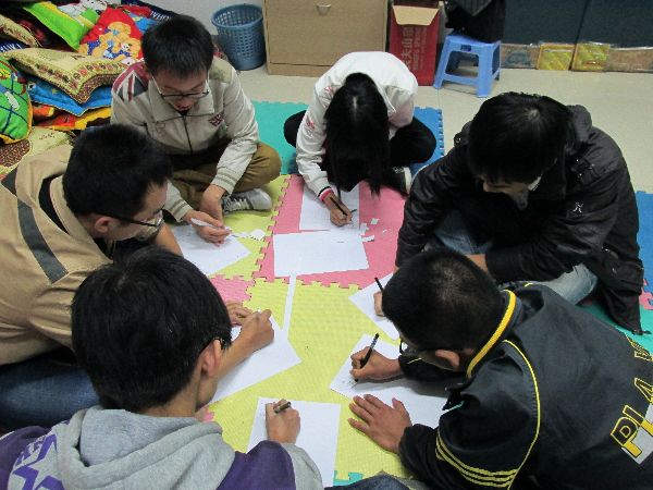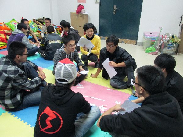 潘老师将18位同学分为3组,通过每组成员进行游戏的形式对同学们进行辅导。活动的开头,潘老师让各组同学以“滚雪球”的游戏方式让每个人认识周围的同学。“背夹背”的游戏让同学们领略了协作的能量,而“哑语排序”游戏则让同学们领悟了沟通的重要。活动中,潘老师还通过一系列的问题了解了同学们目前的关于学习方面的情况,并就该方面对同学们进行辅导,引导同学们自主解决自身存在的学习问题。与此同时,通过“闭目冥想”的方式让同学们对自己的未来有了初步的勾画。活动最后,潘老师让同学们在纸上规划了家庭、事业、成长三方面的目标,并鼓励每一个人都努力去实现自己的目标。