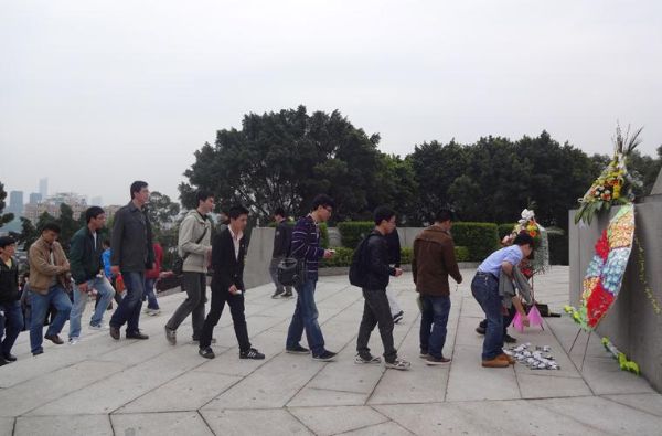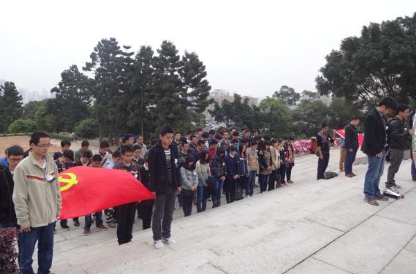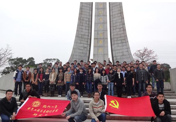 研究生党支部同学们胸前佩戴白花来到肃穆的文林山烈士陵园。周翔捷同学简短的介绍了文林山烈士陵园的情况,之后开始悼念仪式。站在纪念碑下,全体师生低头默哀,向烈士致敬,伴随着低回的音乐默默地沉思,没有豪言壮语,有的只是心中那份深深的哀痛与无限的敬意。随后,师生摘下胸口佩戴的小白花,依次的摆放纪念碑前,表达我们对革命烈士的敬仰之情。悼念仪式结束后,各支部同学分别在纪念碑前合影留念。