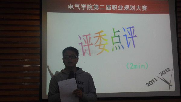 本次职业生涯规划大赛决赛的决赛分为两个环节,一是选手进行ppt展示和现场互动,二是问答环节。选手们以精彩的ppt充分展示自我,面对评委的提问对答如流,并博得观众热烈的掌声。这是一场考验选手口头表达能力及应变能力的比赛,在这场激烈而又紧张的赛场上,选手们淡定自若,充分展现了电气学子的风采。最后,柳百毅同学摘得一等奖的桂冠,王诗庄同学和巫锡华同学荣获二等奖,刘荣灿同学和田园同学取得三等奖佳绩。