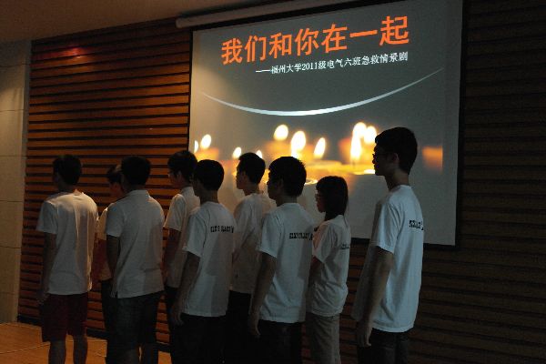赛前通过抽签决定各小组比赛次序。比赛项目包括心肺复苏、头部包扎、左前臂大出血包扎。比赛要求通过设计情景剧来表现伤员受伤的过程,以提高观众的安全防范意识,增强观众在灾后自救的能力。