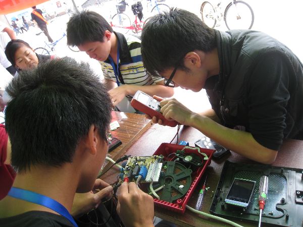 科技部成员们便开始紧张的布置现场,盘点维修器材,青协成员则认真记录同学们送过来的故障电器的故障点,并做好登记,以便 之后的领取。科技部成员们认真小心地摆弄着电烙铁和万用表,给电器接上一根根断掉的线、换掉一个个坏掉的电容。而高年级的学长们则在旁边指导着他们,还不 时地给他们做示范,以便于他们能更好地完成维修。在电气科技部旁边的是主管电脑维修的成人影视片