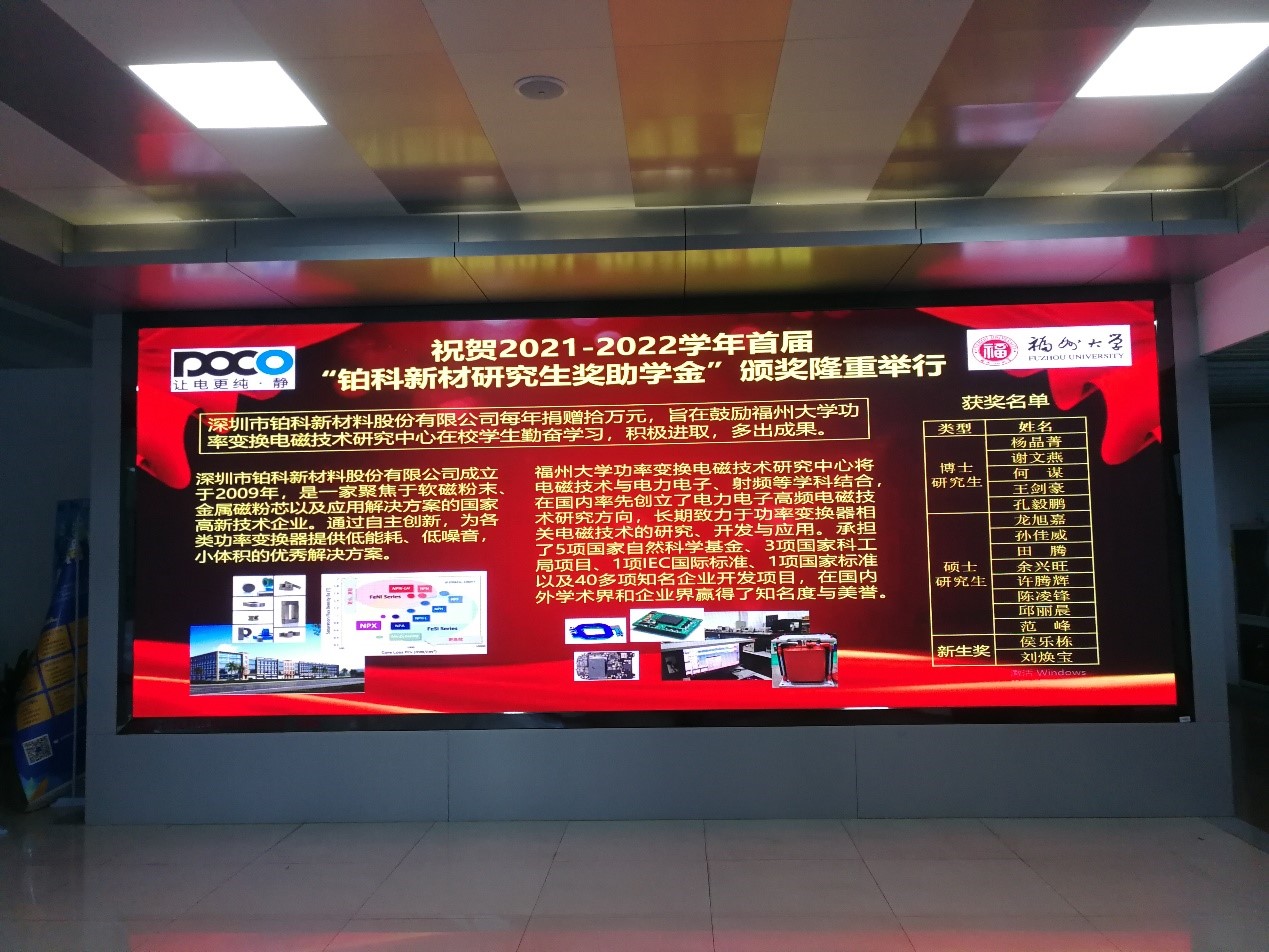 2021年12月16日9:00,“铂科新材研究生奖助学金”颁奖于成人影视片