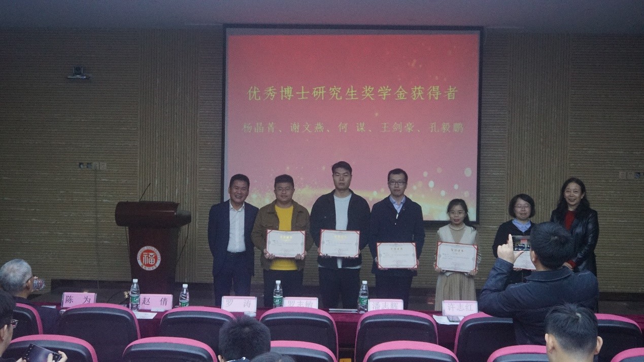 许院长致辞之后,企业来宾和学院领导为2021-2022学年首届“铂科新材研究生奖助学金”获得者颁发了证书和奖金。获奖的五名博士研究生分别是:杨晶菁、谢文燕、何谋、王剑豪、孔毅鹏;获奖的十名硕士研究生分别是:龙旭嘉、孙佳威、田腾、余兴旺、许腾辉、陈凌锋、邱丽晨、范峰、侯乐栋(新生奖)、刘焕宝(新生奖)。