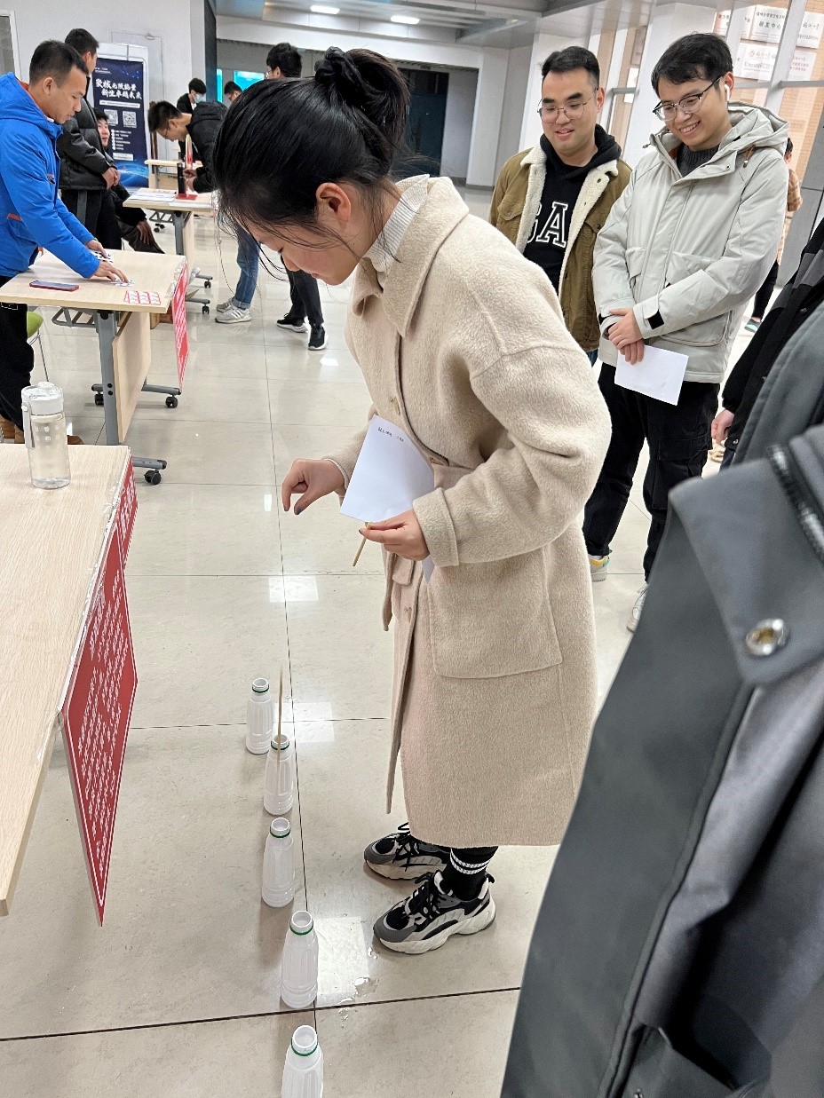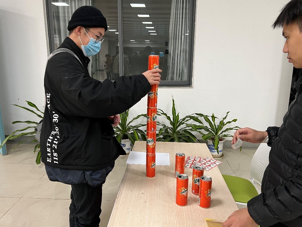 ①易拉罐积木:叠易拉罐,在不倒的情况下叠五个易拉罐,成功者得奖。时长30秒,每人有两次机会,成功者获10点能量点。