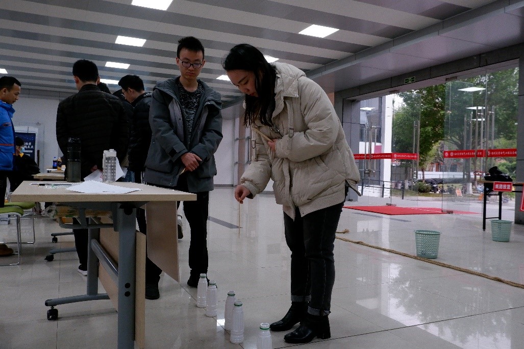 ④眼光独到:准备好5支筷子,5个空瓶。参赛者站在空瓶的一侧,持筷子悬于离瓶口60厘米的高度,手臂平直,瞄准瓶口,将筷子投入瓶中。如果筷子掉进瓶里,便可获得奖励。每人每个瓶子有两次机会,掉进去2个瓶子即可通关。时长为2分钟,成功者获50点能量点。