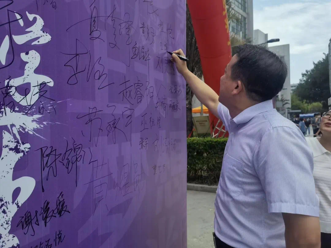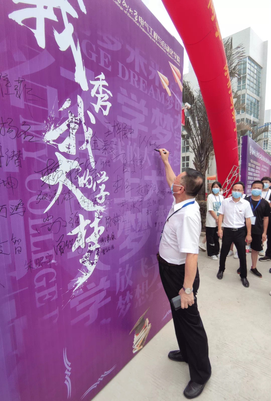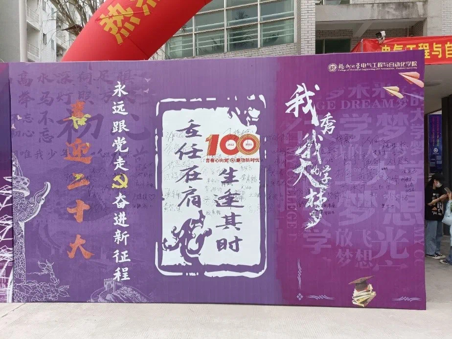 最后,陈国龙书记、黄身勇副书记等领导老师在学院设计的迎新展板上签名留念,鼓励电气学子矢志践行初心使命,奋力创造新的辉煌,面向未来,再立新功。