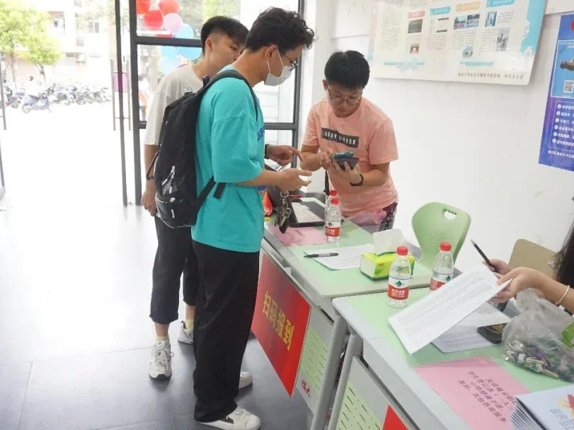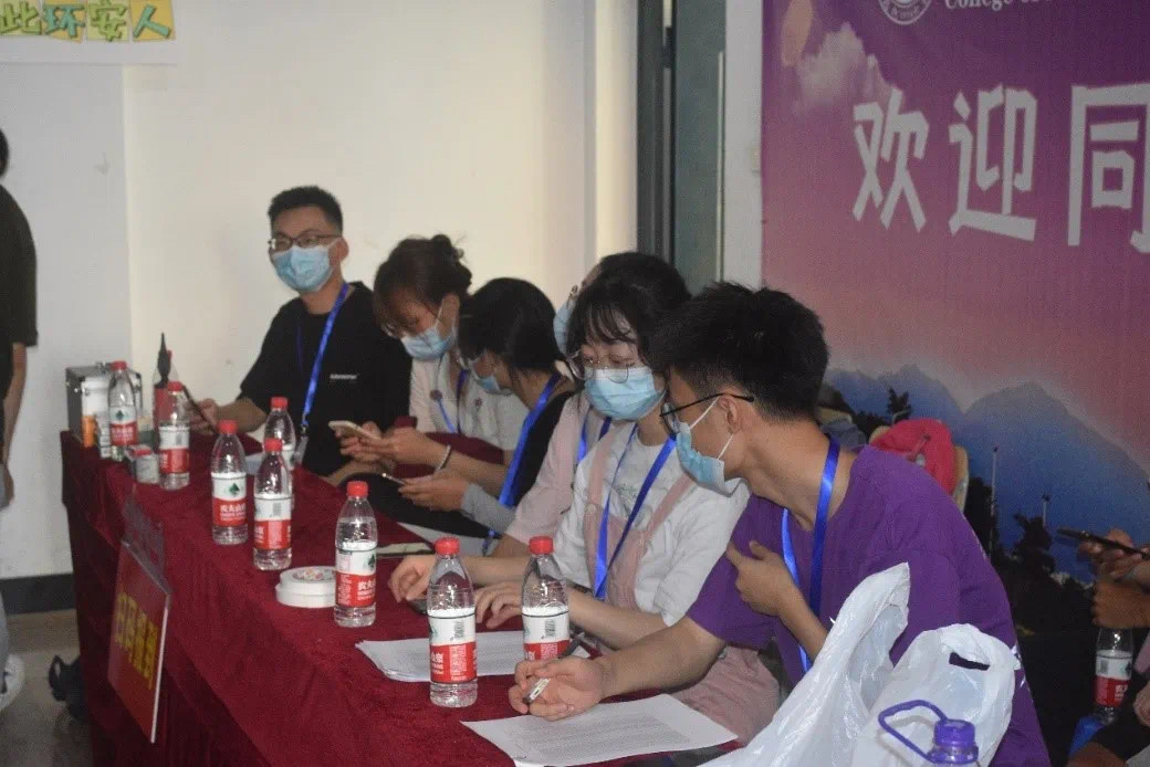 与此同时,学院团委学生会、研究生会工作人员已经在各自迎新报到处排好长桌,立好引导牌,以饱满的精神准备迎接新生的到来。志愿者们佩戴绶带,在校门口、报到处、生活区等地主动帮助新生,以积极的服务态度和高效有序的工作帮助新生完成报到工作,入住新宿舍。