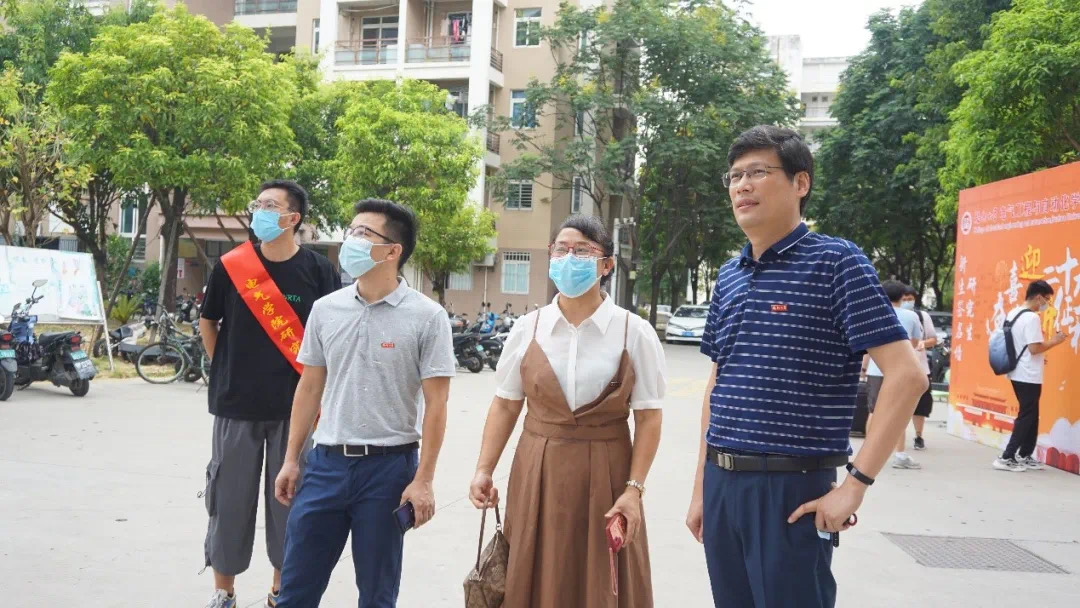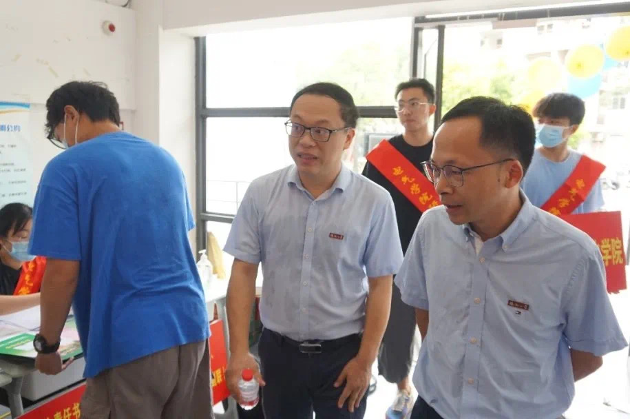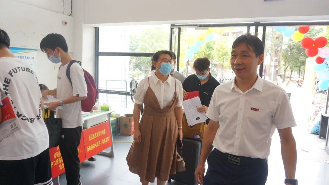 党委陈国龙书记、黄身勇副书记、杨黄浩副校长一行人亲临迎新工作现场,亲切慰问现场的迎新志愿者,激励迎新工作参与者以更积极的工作态度投入工作,同时仔细询问了新生报到情况,深切体现了学校对迎新工作的重视。