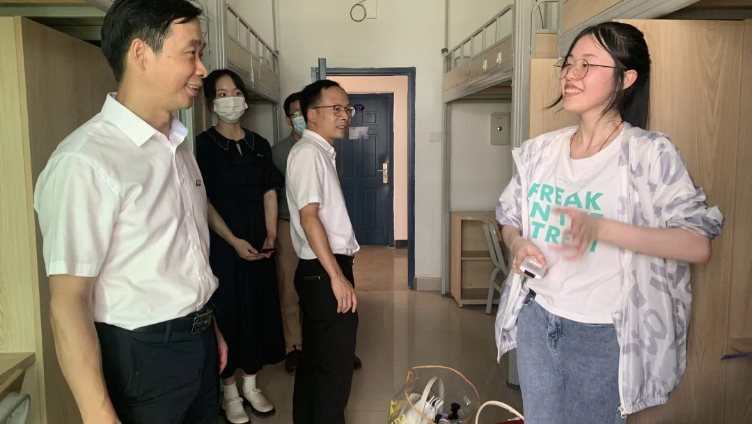 的同学们表示了欢迎,并与新入住的学子就住宿环境、生活需求等问题进行沟通,充分体现了学校领导对学生的深切关怀。
