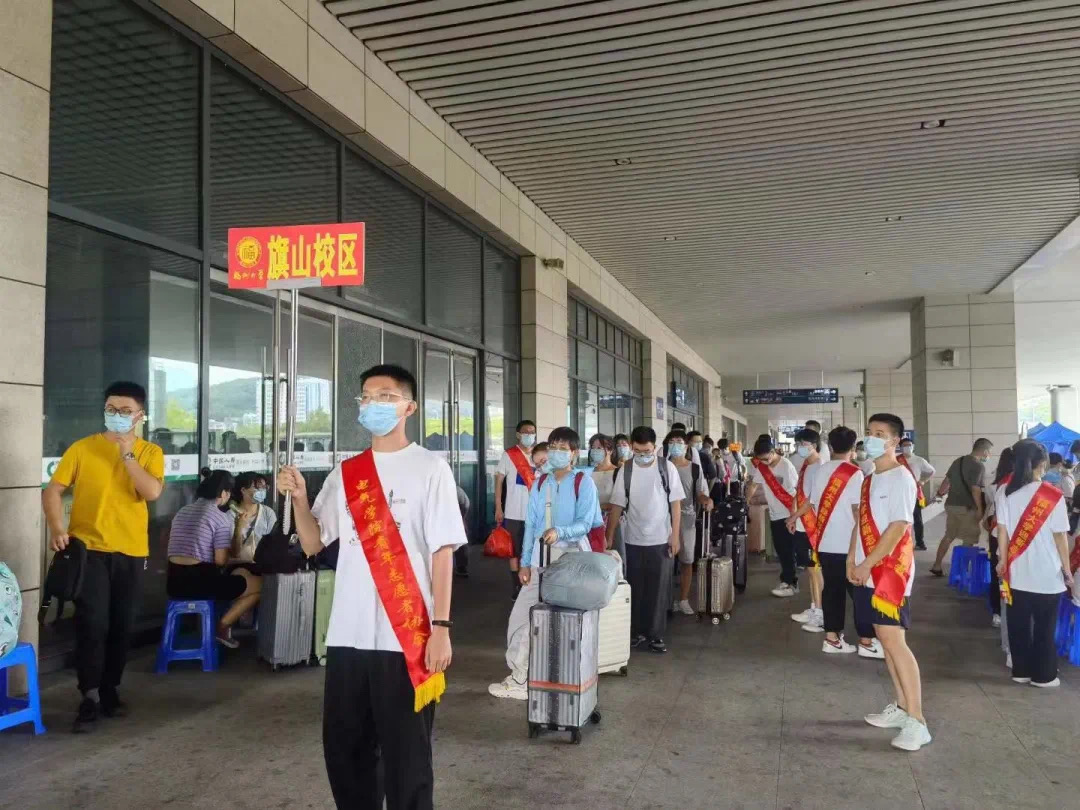 师生便已到达福州火车站迎接即将到来的全校新生,成为迎新路上的最前线。同学们刚出站就能看见成人影视片