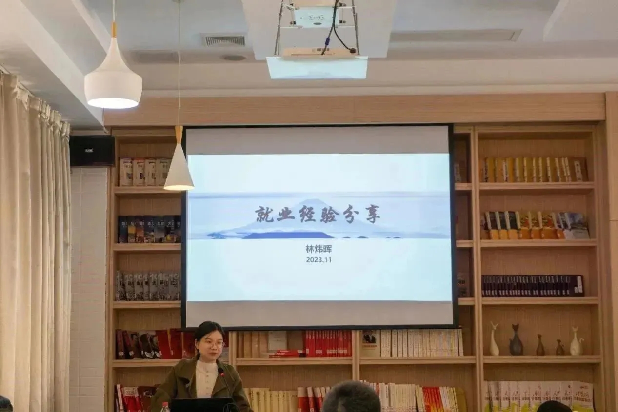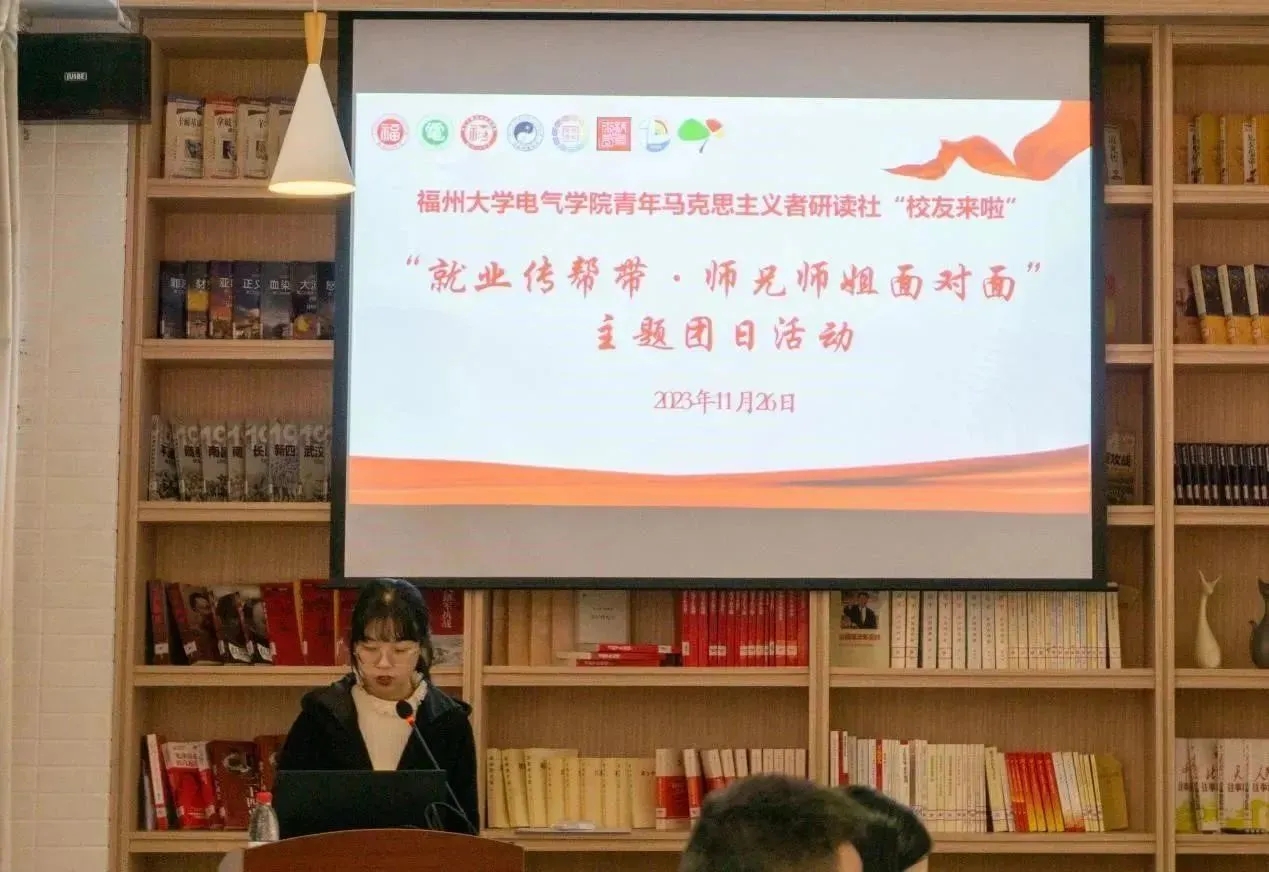 于11月25日上午在新楚楼一楼青年马克思主义者研读社举行“就业传帮带·师兄师姐面对面”的主题团日活动。本次活动特邀中国联通福建省分公司的叶兴贵学长和国网福建营销服务中心的林炜晖学姐分享就业经验和宝贵建议。活动由院研会欧珊珊主持。