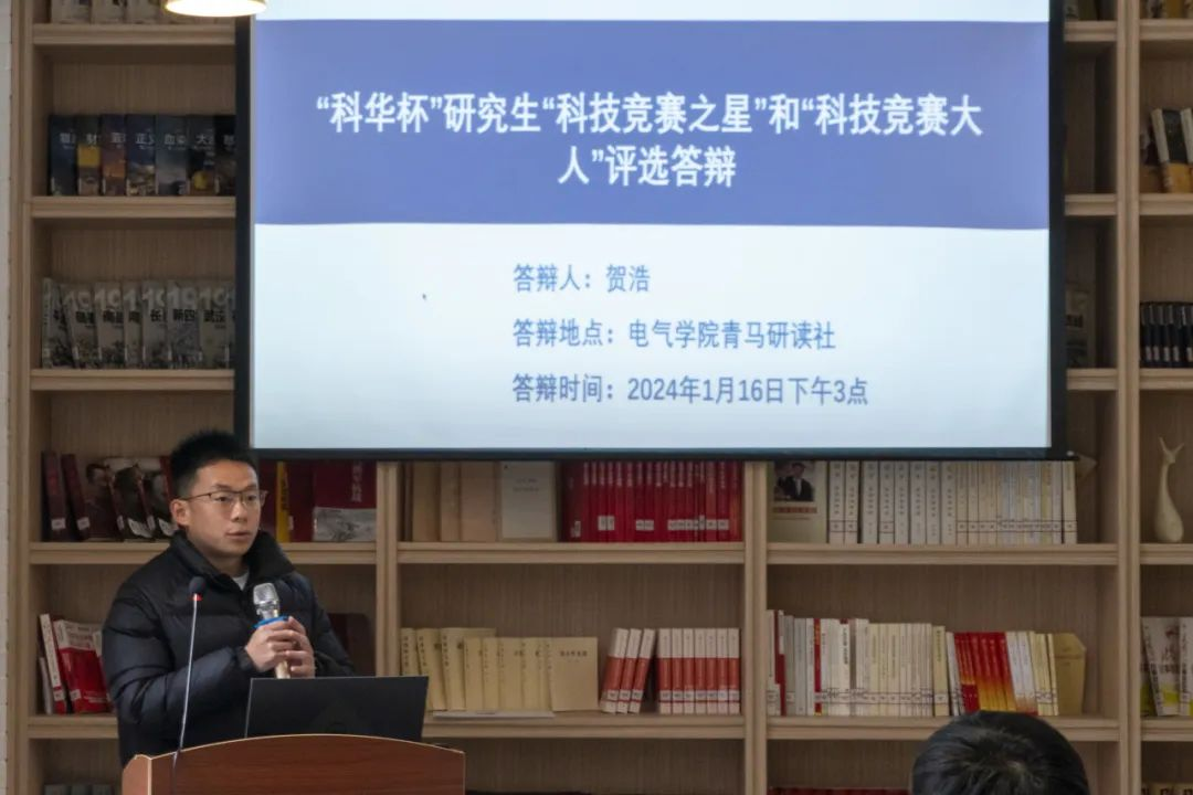 团委书记李金土老师,研究生辅导员许海燕老师,引进生兼职辅导员刘育豪博士和2023级研究生辅导员黄莹莹老师。经学院初评,本次答辩评选会共有六名选手参加答辩。本次答辩评选会由院研究生会学术部负责人林民鑫主持。活动得到科华数据股份有限公司赞助。