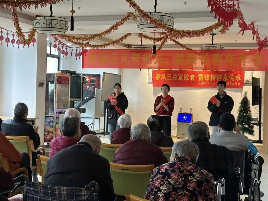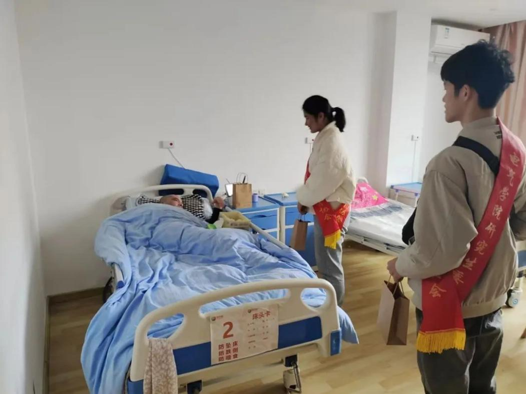 团委志愿者工作部在实验中心教工党支部书记陈建国老师、实验中心谢文燕老师和2023级辅导员赖先民老师的带领下,前往逸百家上街康养院开展敬老志愿活动,怀揣着满心的热忱与耐心,为老人们送上了暖心的问候与真挚的陪伴。