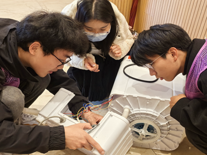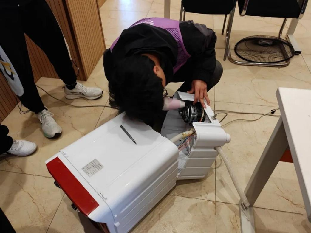 在与老人们温馨交谈的同时,部分志愿者组成了义务维修小队,充分发挥“电气人”的特长,他们对康养院的电风扇、洗衣机等电器进行了义务维修,有效延长了这些电器的使用寿命,为康养院减少了因各种小问题造成的大开支。“道虽逊,不行不至;事虽小,不为不成。”此次义修活动不仅弘扬了志愿者精神和雷锋精神,也展现了“福大电气,顶天立地”的精气神。