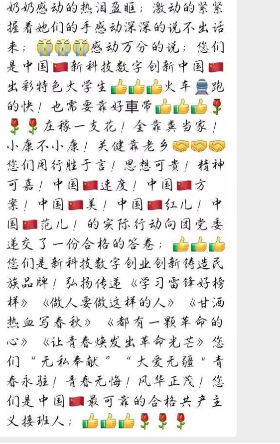 随后,志愿者们看望了正在床上疗养的老人,为他们送去了福寿安康、早日康复的祝福。其中,一位活泼外向的范奶奶更是热情地为志愿者们表演了一段快板,她的表演赢得了大家的阵阵掌声。据了解,范奶奶是革命烈士后代的女儿,她的坚强和乐观感染了在场的每一个人。在活动结束后,志愿者们收到了来自范奶奶的暖心留言,坚定了他们继续投身志愿服务的决心,鼓舞了他们以行动践行“让青春焕发革命光芒”的奉献和大爱。