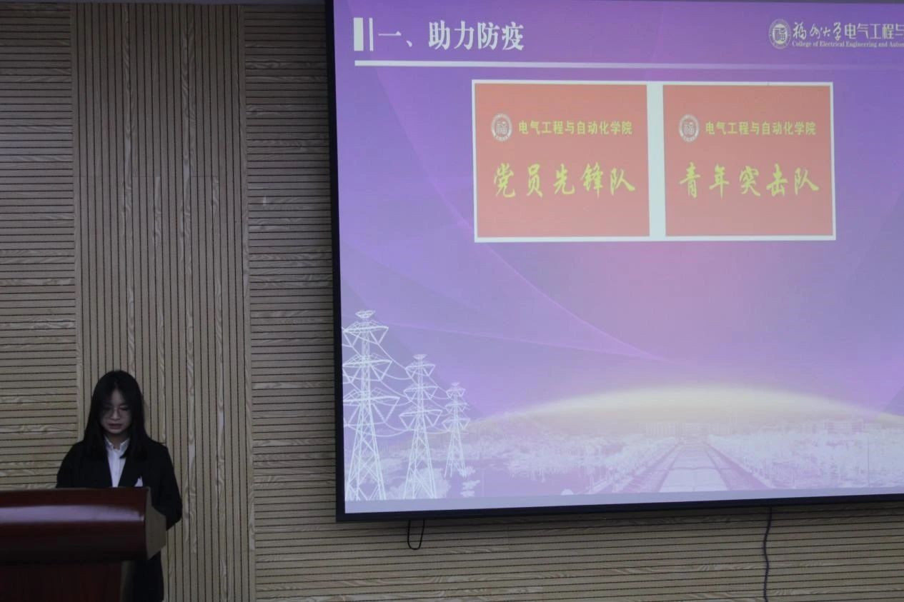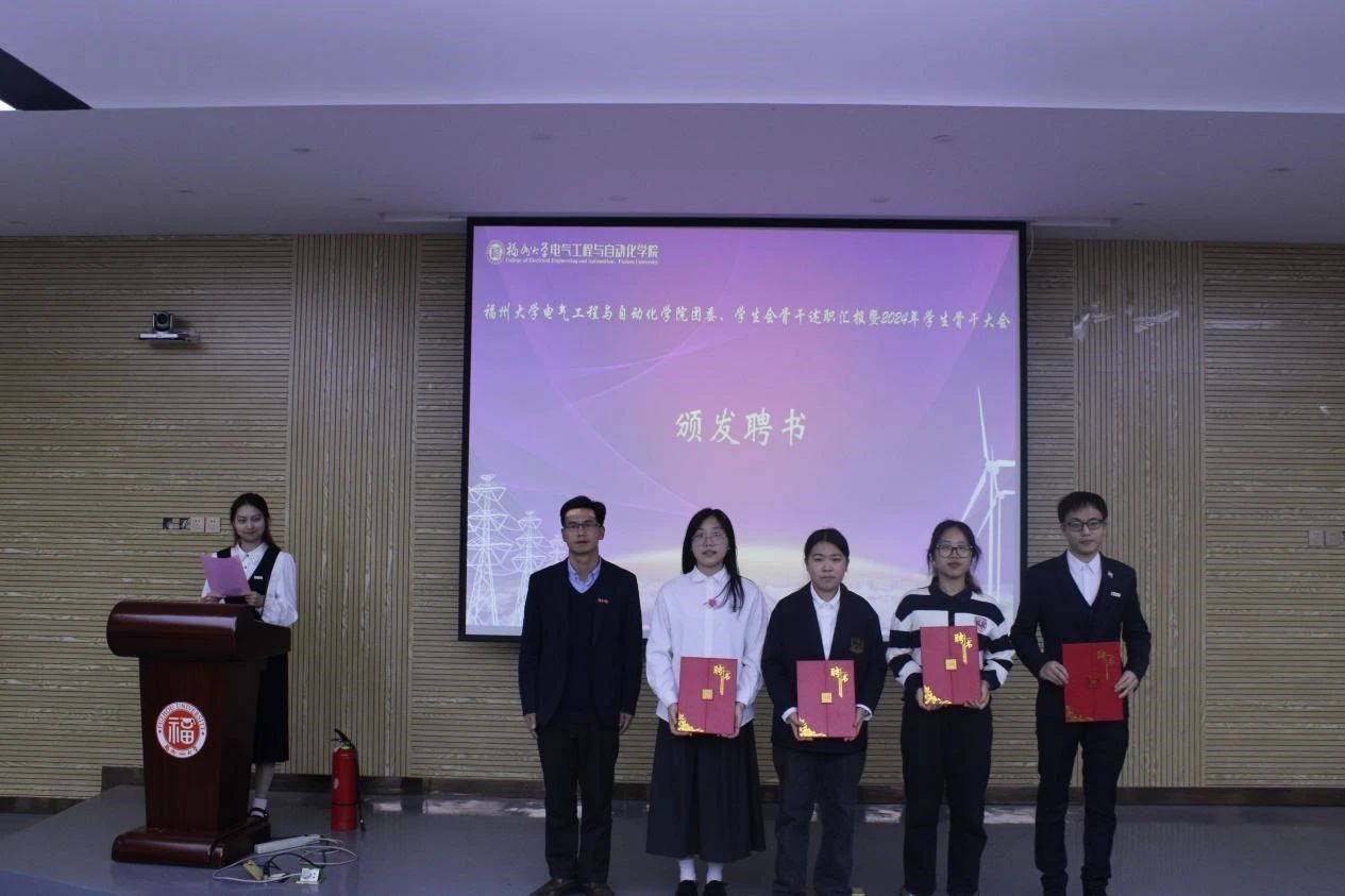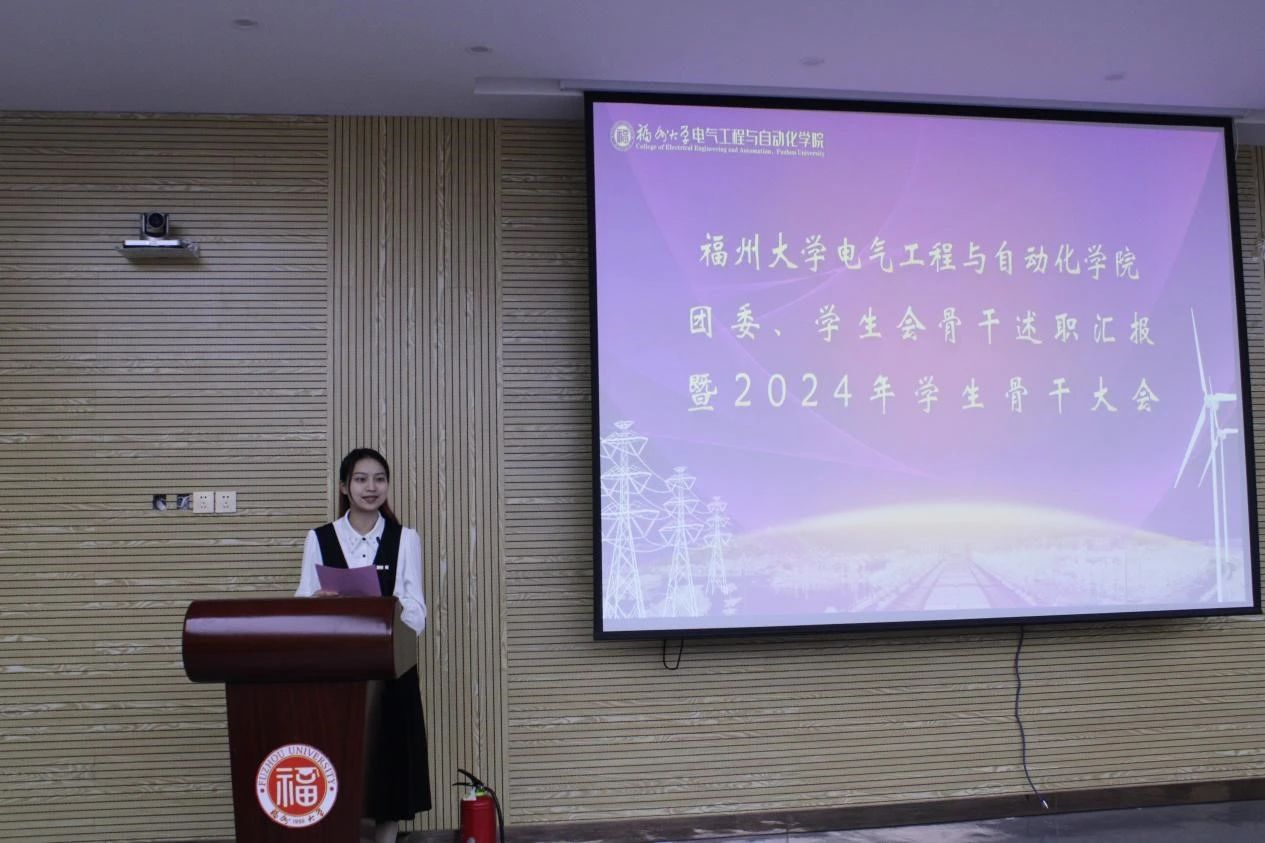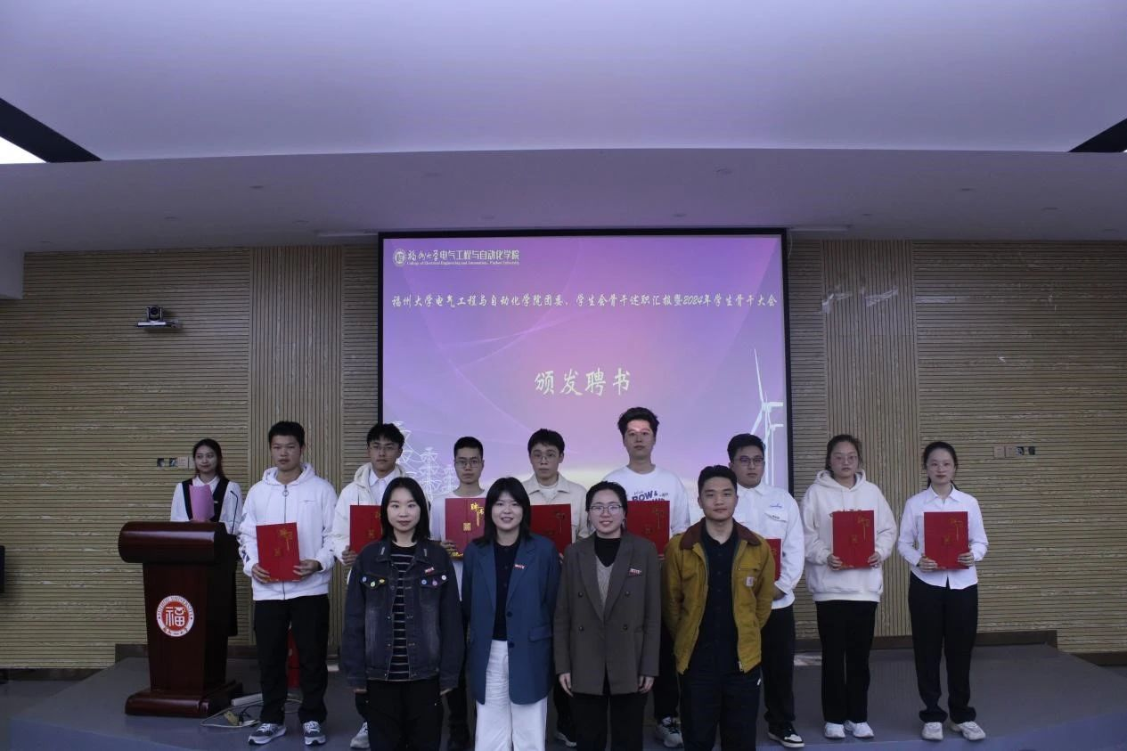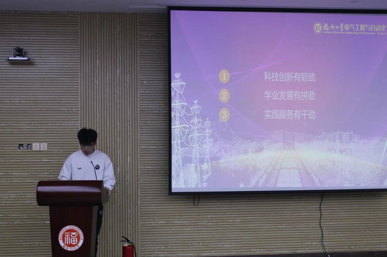 学院党委钟钛申副书记讲话。钟书记充分肯定了学生骨干在学院党建和思想政治工作中发挥的作用和作出的贡献,希望学生骨干切实强化“工匠精神”、“福大电气,顶天立地”文化的深化内化转化,并对学生骨干提出四点要求。一是在能力素质上,要练就“六大素质”。即练就好扎实专业、过硬本领、精益求精、开口能讲、问策能解、遇事能办“六大素质”。二是在关系处理上,要处理“五大关系”。即处理好仰望星空与脚踏实地、勤奋学习与努力工作、做好服务与增长才干、当好标杆与集体进步、坚持守正与大胆创新“五大关系”。三是在社会实践上,要坚持“六个并重”。即坚持个人意愿与组织指导、呼应主题与找好点子、思想淬炼与理论宣讲、专业训练与实践锻炼、精心策划与总结提升、打造品牌与强化引领“六个并重”。四是在发挥作用上,要做到“四个表率”。即做到在思想引领中走前头作表率、在学业发展中走前头作表率、在服务同学中走前头作表率、在实践锻炼中走前头作表率“四个表率”。