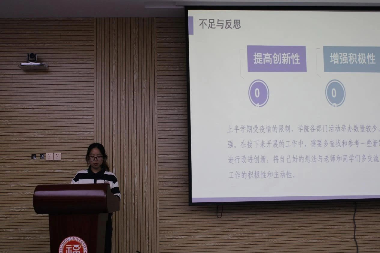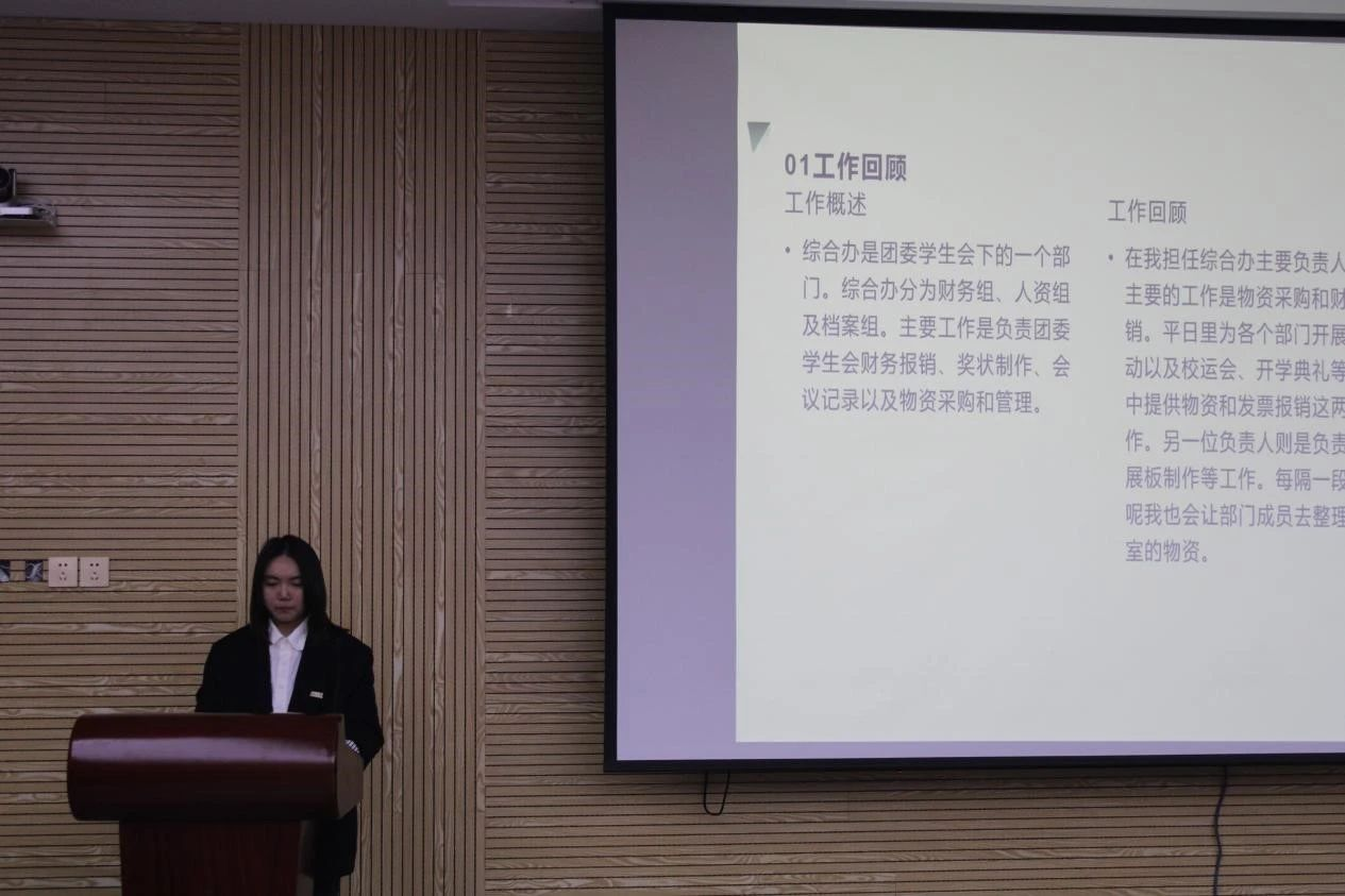 学生会各部门主要负责人讲述了一年来的主要工作与活动策划,总结经验,分享感悟。各部门在保持自身独特性的基础上,积极协调配合,共同合作,致力于培养学子在社会实践、身心健康、就业指导、学习创新以及权益认知运用等多方面的能力。他们通过搭建多元化的平台,为学子们提供了丰富的实践机会和广阔的发展空间。