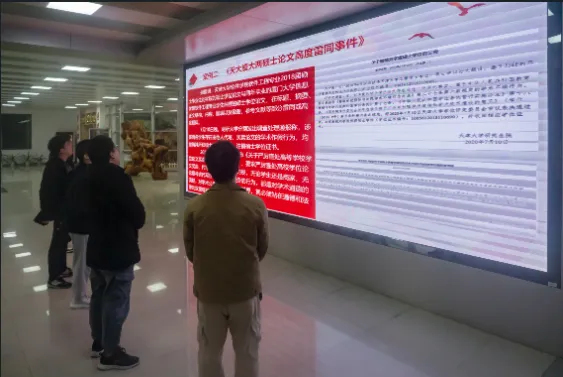 同时,学院在一楼大厅大屏幕展示学术作假警示案例,对学术造假敲响了警钟。警示案例深入浅出地告诉大家学术作假不仅对自己带来极严重后果,对社会也带来恶劣影响,让同学们深刻认识到违反学术规范可能带来的巨大风险。这次活动既是对学术不端行为的严厉警示,更是对坚守学术诚信的明确启示。