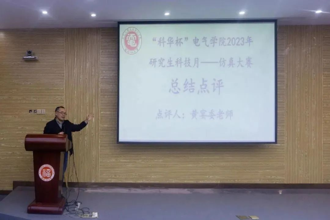最后,由黄宴委老师对本次仿真大赛做了精彩总结与点评。黄老师认为本次仿真比赛很有意义,不仅提升了大家的科研能力,还锻炼大家的展示能力。同时也为学院打造了良好的学术氛围。黄老师也指出,同学们展示能力和逻辑性还需要提高,仿真和论文要突出重点,比如要体现自身的方法比其他方法的优势所在,比赛汇报的内容可以结合实验室课题,进行更深入的研究,后续可以将研究内容转化为优秀的论文。