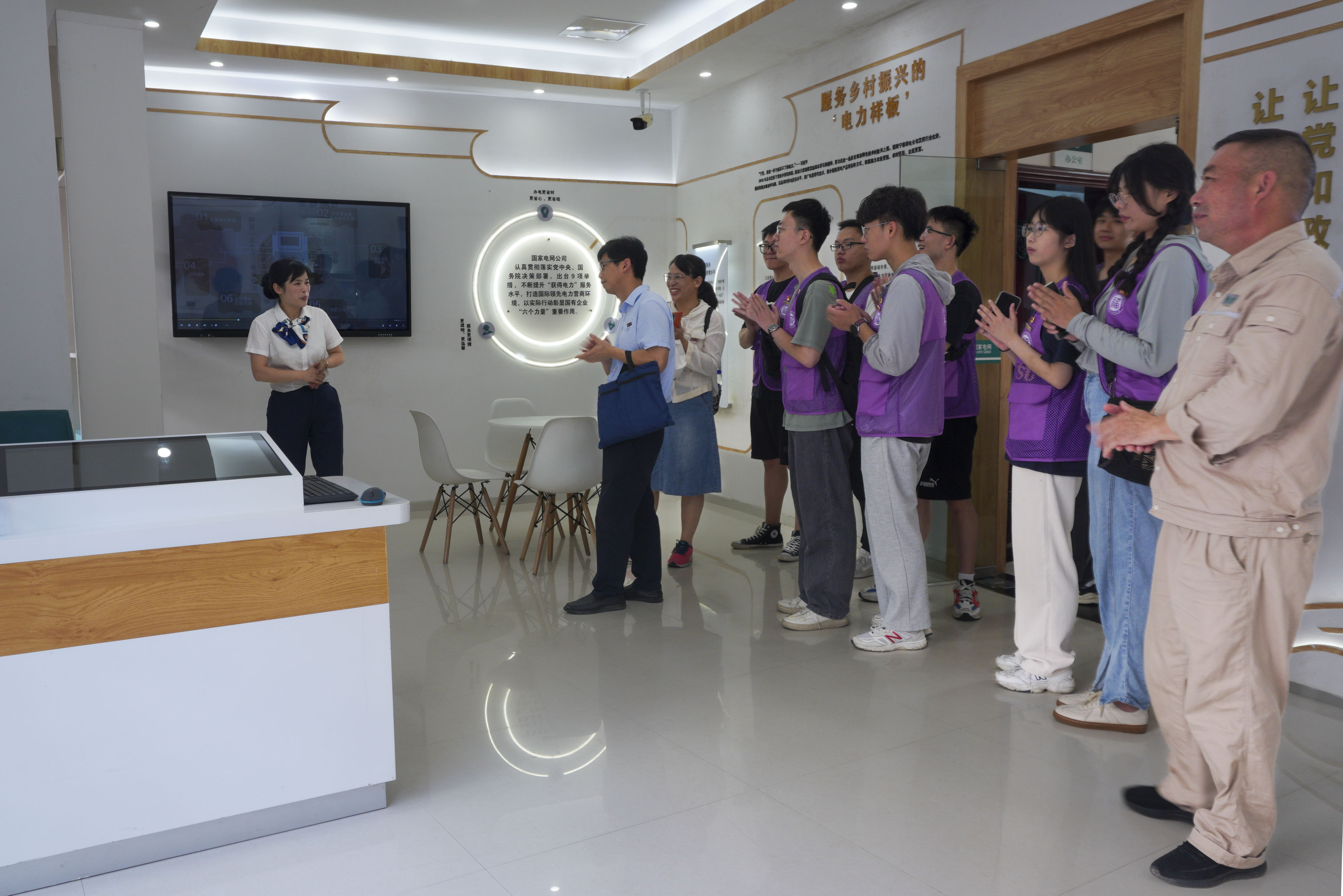 座谈会结束后,实践队成员在所长王金伟的带领下来到下党片区供电所参观学习。国网公司秉承“人民电业为人民”服务宗旨,聚焦以客户为中心的服务理念,持续深化乡镇供电网格综合服务,打造数字化供电所示范点,为下党红色发展提供强力保障。王所长表示,数字化应用了大量人力和时间,除简化了供电所日常工作外,当地居民也可以通过广电网络集团股份有限公司打造的智慧型数字融合服务点,办理广电网络及电力开户、缴费、信息变更、业务办理、保修维护等事项,很大程度的便捷了当地居民的生活。