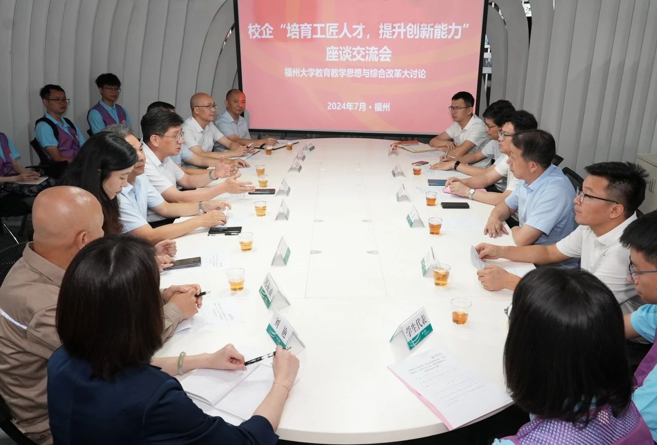 为公司输送了一大批优秀学子,为公司高质量发展积蓄人才后备力量,希望双方在科研创新、人才培养等方面继续加大交流合作。郭文忠副校长代表学校对国网福州供电公司长期以来给予的支持与关心表示衷心的感谢,他表示学校正在纵深推进教育教学综合改革,积极树立并践行教育教学的新理念。冯振波师傅所展现的劳模精神与工匠精神,是极为宝贵的精神财富,应当将这些精神有机地融入到高校的人才培养路径之中。同时,郭文忠副校长指出,学校应当深入学习劳模工作室对人才的培养机制,力求将学生培养成既具有扎实理论功底,又具备创新精神的高素质人才,为社会和国家的发展贡献更多的青春力量。随后,双方就校企在“工匠人才”培养建设中的新思路与合作方向进行了深入的交流与探讨,就共同培育工匠人才、提升创新能力达成了初步的共识。