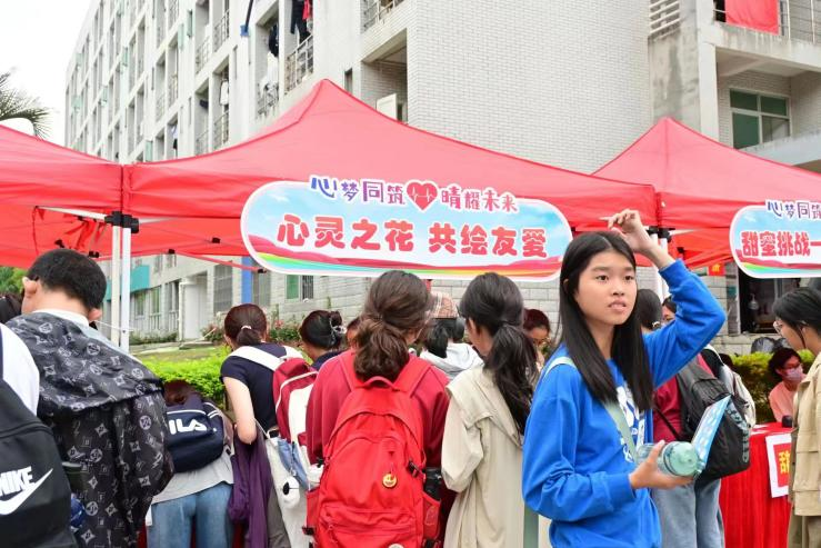 在铜盘校区生活区广场开展了第十九届“10•10”世界精神卫生日心理汇系列活动,其中“心灵之花,共绘友爱”主题换花活动由成人影视片