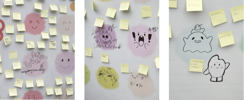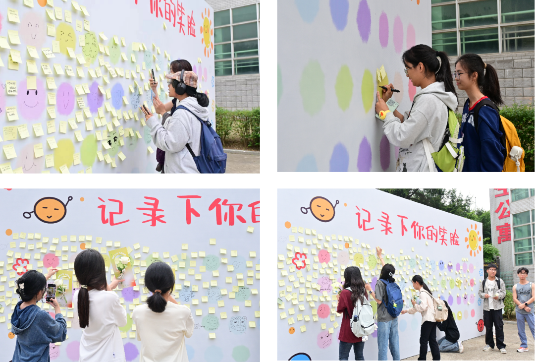 随后,同学们将自己的便签贴在展板上,并绘制了一张张笑脸。这些笑脸或简单或精致,但无一例外地传递着积极和快乐的情绪。它们像是一朵朵心灵之花,绽放在展板上,为这个秋天增添了一抹亮色。