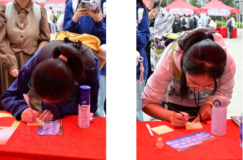活动伊始,同学们便在活动处排起了长队,他们或是独自一人,或是三两成群。每个人都带着自己的故事和心情,静静地坐在桌前,沉思片刻后,便开始在便签纸上写下自己的故事或鼓励的话语。有的同学分享了生活中的小确幸,有的则写下了对他人的鼓励和支持。每一段文字都充满了温情和力量。