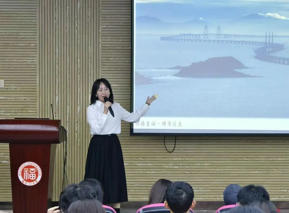 一号选手傅潇颖率先分享新时代有为青年故事,引入身边榜样,最终落脚于阐述自身如何成为有为青年,引导大家将榜样力量转化为实际行动,努力成长为可堪大任的青年。