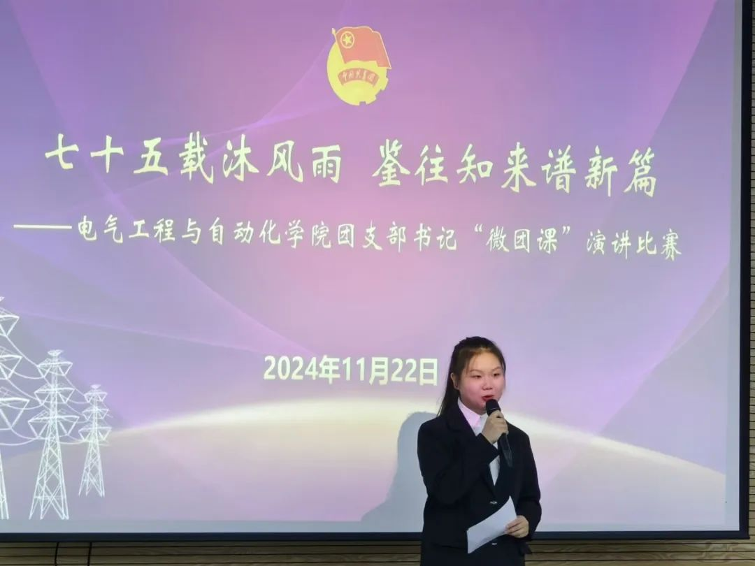 十二号选手陈成堉以新中国成立75周年为背景,回顾电力行业发展历程,结合全会精神展望行业未来,从专业学习、科研创新、职业规划等角度深入思考如何传承电力精神。