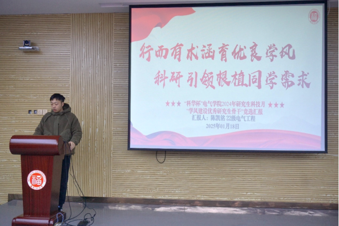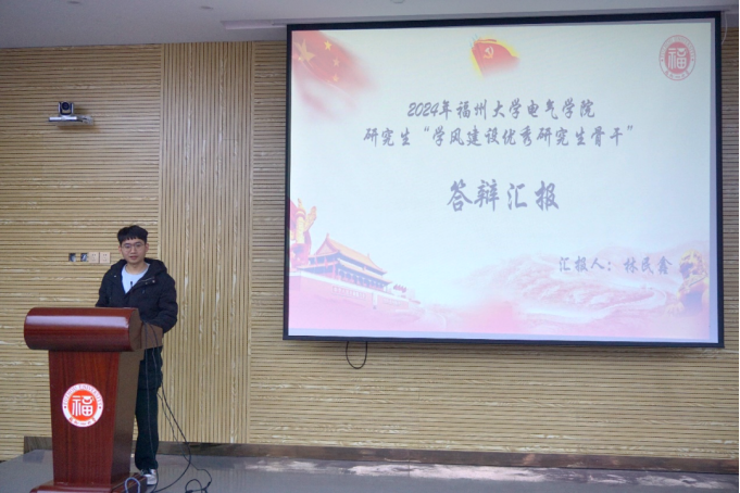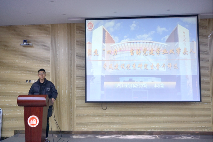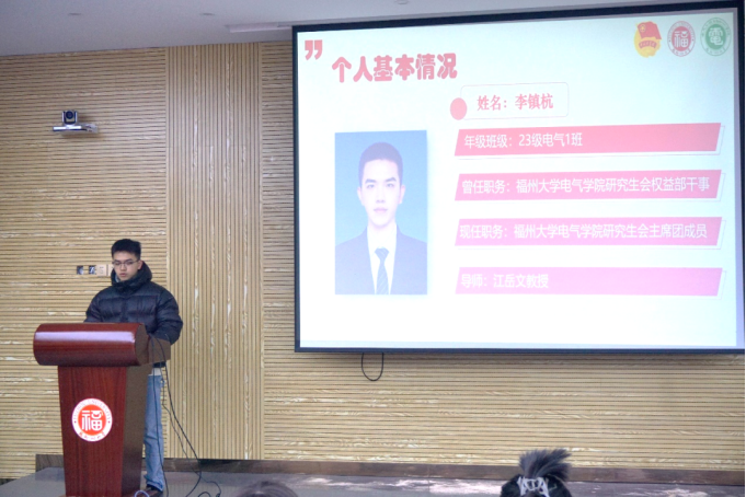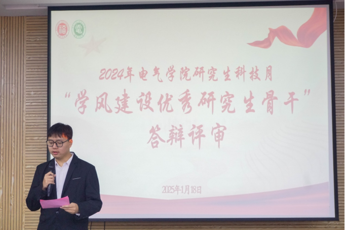 参加答辩评审的研究生骨干们依次上台。他们通过PPT向在场的评委和同学们展示了自己在学业、学生工作等方面为学院学风建设做出的努力和成果。他们从团学工作、班级建设、党建工作等不同方面推进良好的研究生学风建设。