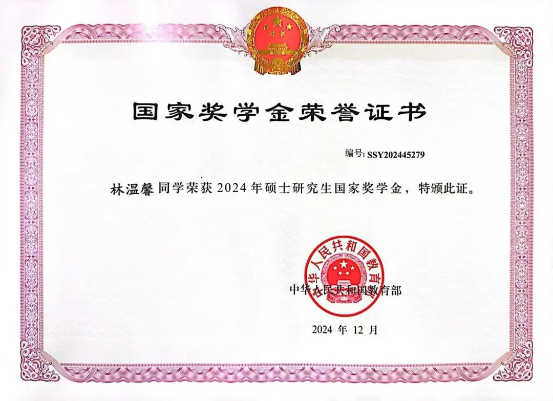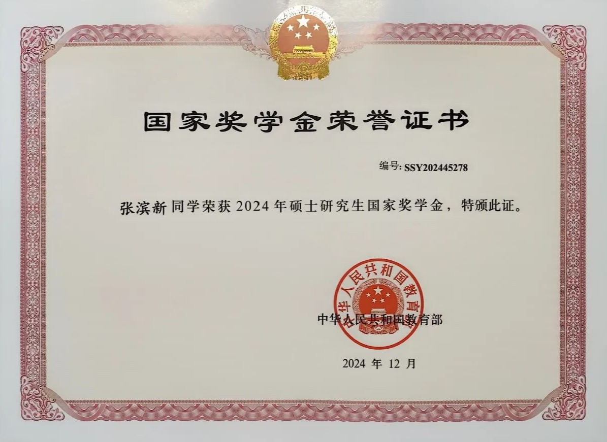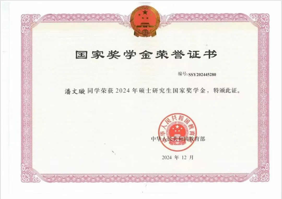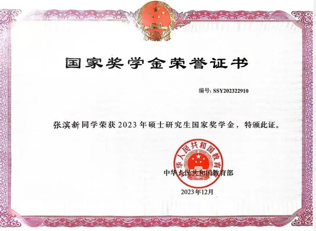 研究生期间学业综合测评成绩专业排名2/22,获得2023年和2024年国家奖学金、中期优秀学业二等奖学金等;并获评成人影视片