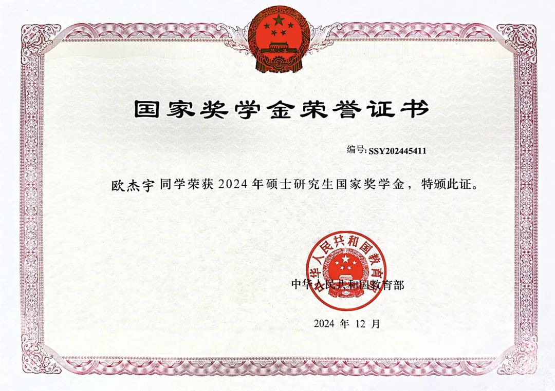 研途漫漫亦灿灿。欧杰宇对自己能够在福大度过研究生生涯而感到幸运,也感谢一直以来学院和导师的培养、家人和朋友们的支持。在未来的研究生生涯中,他也将继续脚踏实地,砥砺前行,在科研的道路上继续奋斗,实现自己的人生价值。
