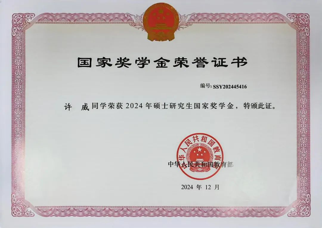 开启研究生生涯后,许威始终以勤奋为笔、刻苦为墨,在学术之路上坚定地追求卓越。面对研究生阶段难度攀升、内容繁杂的课程体系,他如同一位严苛的工匠,精雕细琢每一处知识要点,全力以赴对待每一项学习任务。课堂之上,他全神贯注汲取知识养分,思维紧跟老师节奏,积极参与互动讨论;课后,他一头扎进研究工作,查阅海量文献,反复推导论证。这般不懈的努力与坚持,让他在学年成绩中脱颖而出,排名为6/24。