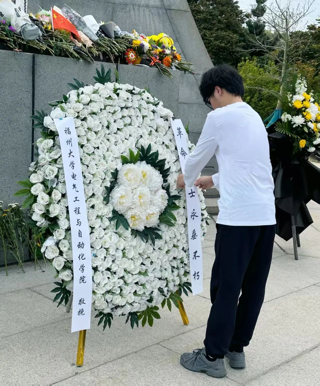 4月4日下午,2024级辅导员唐龙翰老师带领25名学生代表前往福州文林山烈士陵园,在庄严肃穆的革命烈士纪念碑前,哀悼那些为国捐躯的民族英雄。
