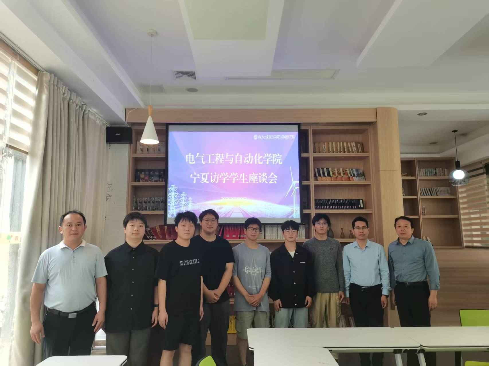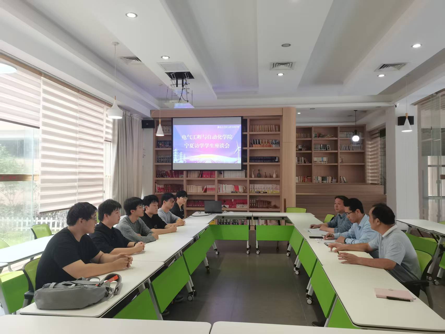 在新楚楼1楼青马研读社召开2位宁夏大学、4位银川能源学院来学院访学的学生座谈会。学院党委副书记兼纪委书记杜领军老师、学院分管本科教学的副院长王武老师、辅导员黄莹莹老师参加座谈会。辅导员尹万东老师主持座谈会。