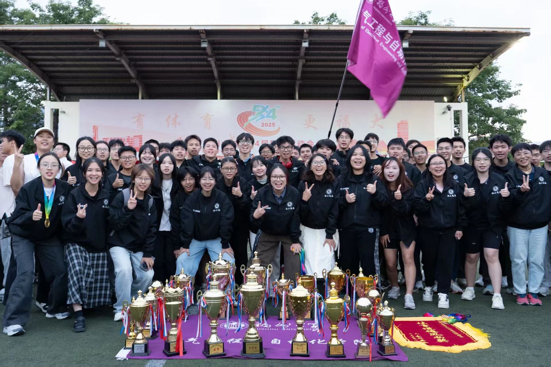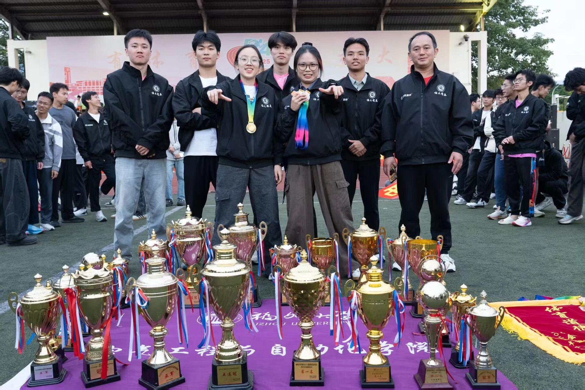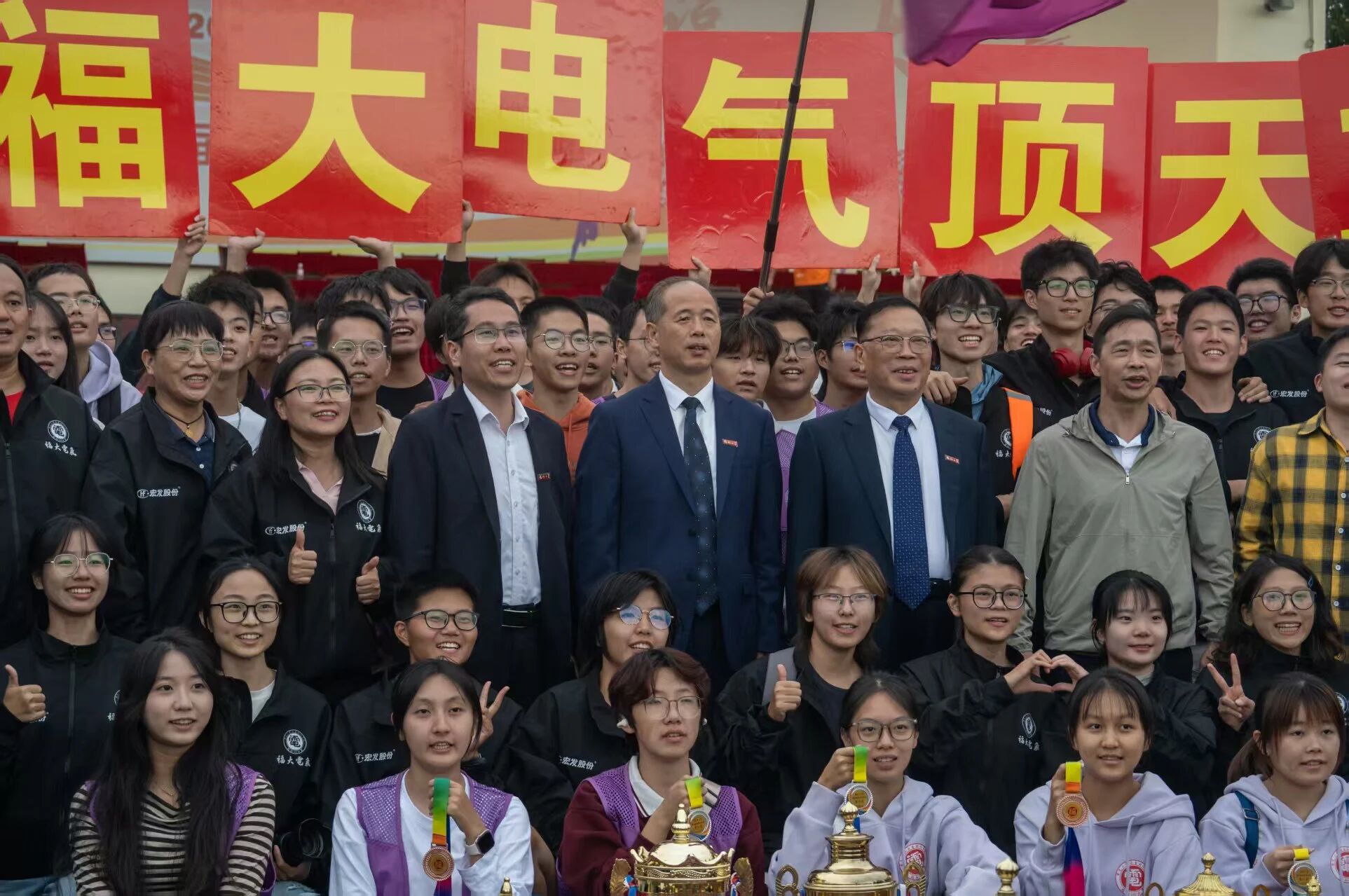 他赞扬了全体运动健儿在赛场上展现的拼搏精神与团队凝聚力;对校党委的正确领导、体育部和校部机关的关心、兄弟学院的陪伴以及厦门宏发校友企业的慷慨支持表示衷心的感谢;回顾学院体育育人发展历史,杜领军副书记向大家分享了学院体育育人的成果与心得,寄语大家“继续传承和发扬‘无体育,不电气’的精神,将其转化为推动学院发展的强大动力,为学校‘有体育,更福大’的文化底色注入新的活力、增添新的色彩!”。
