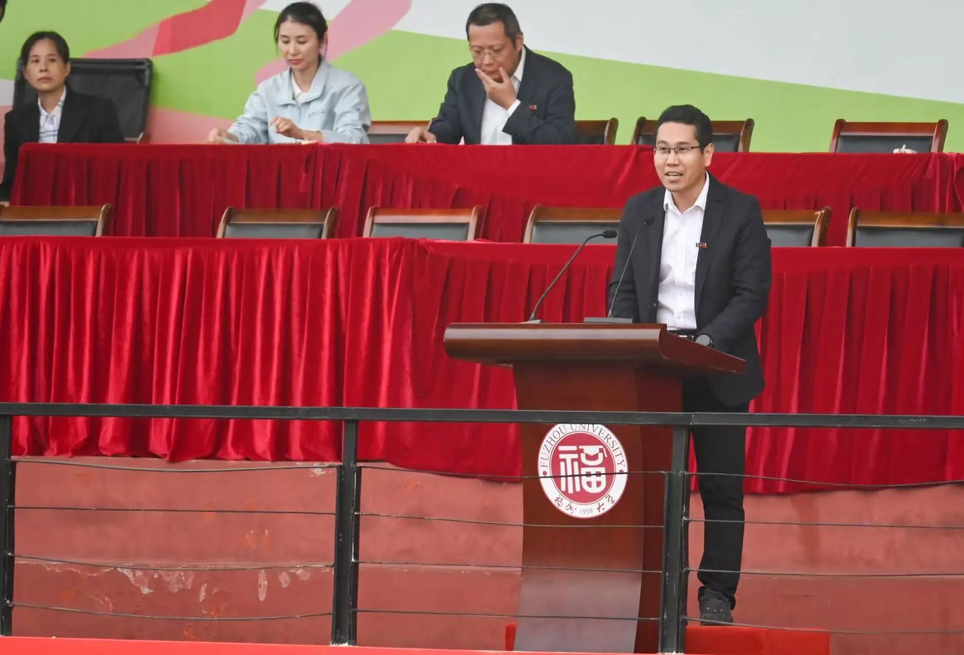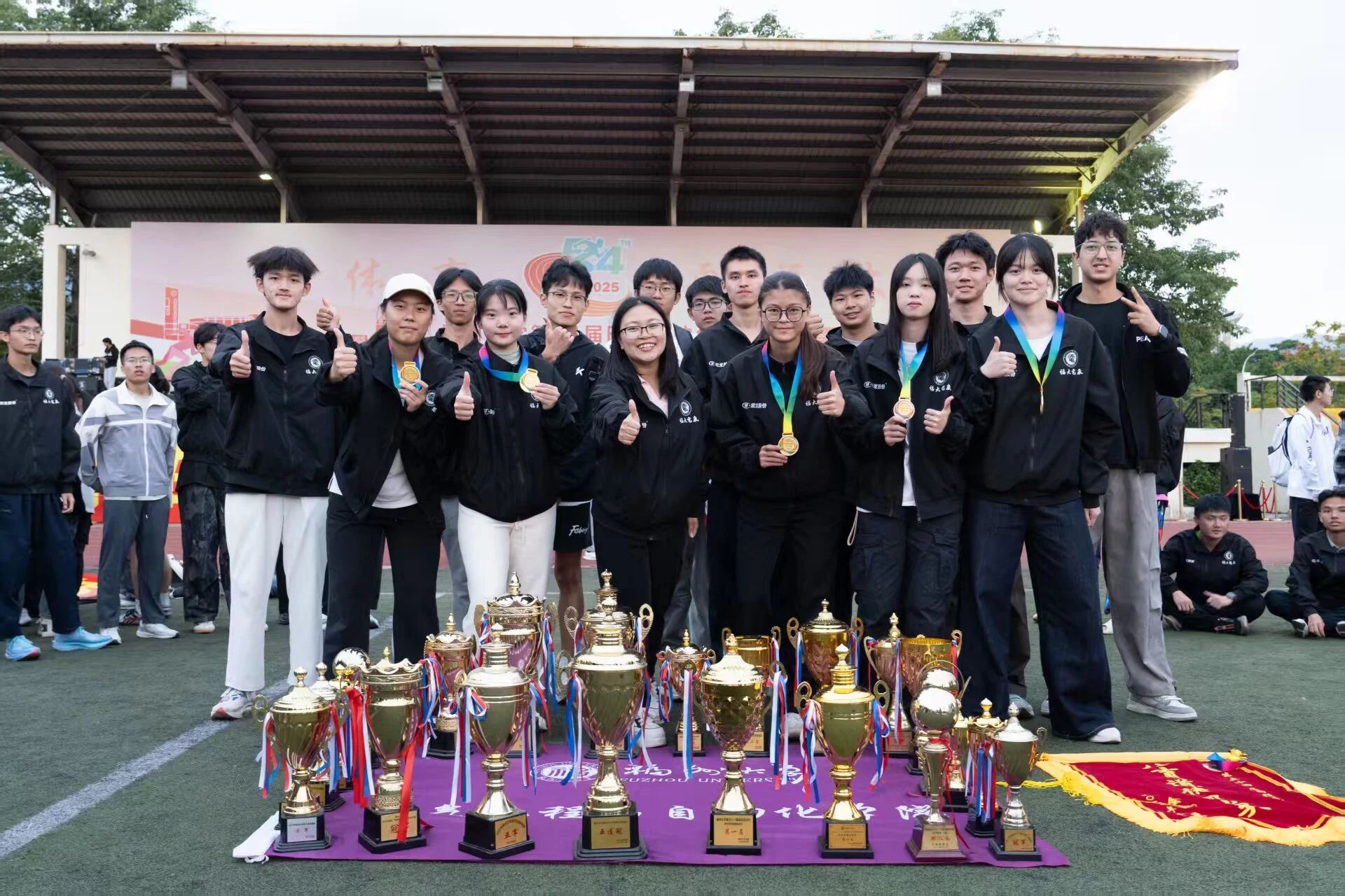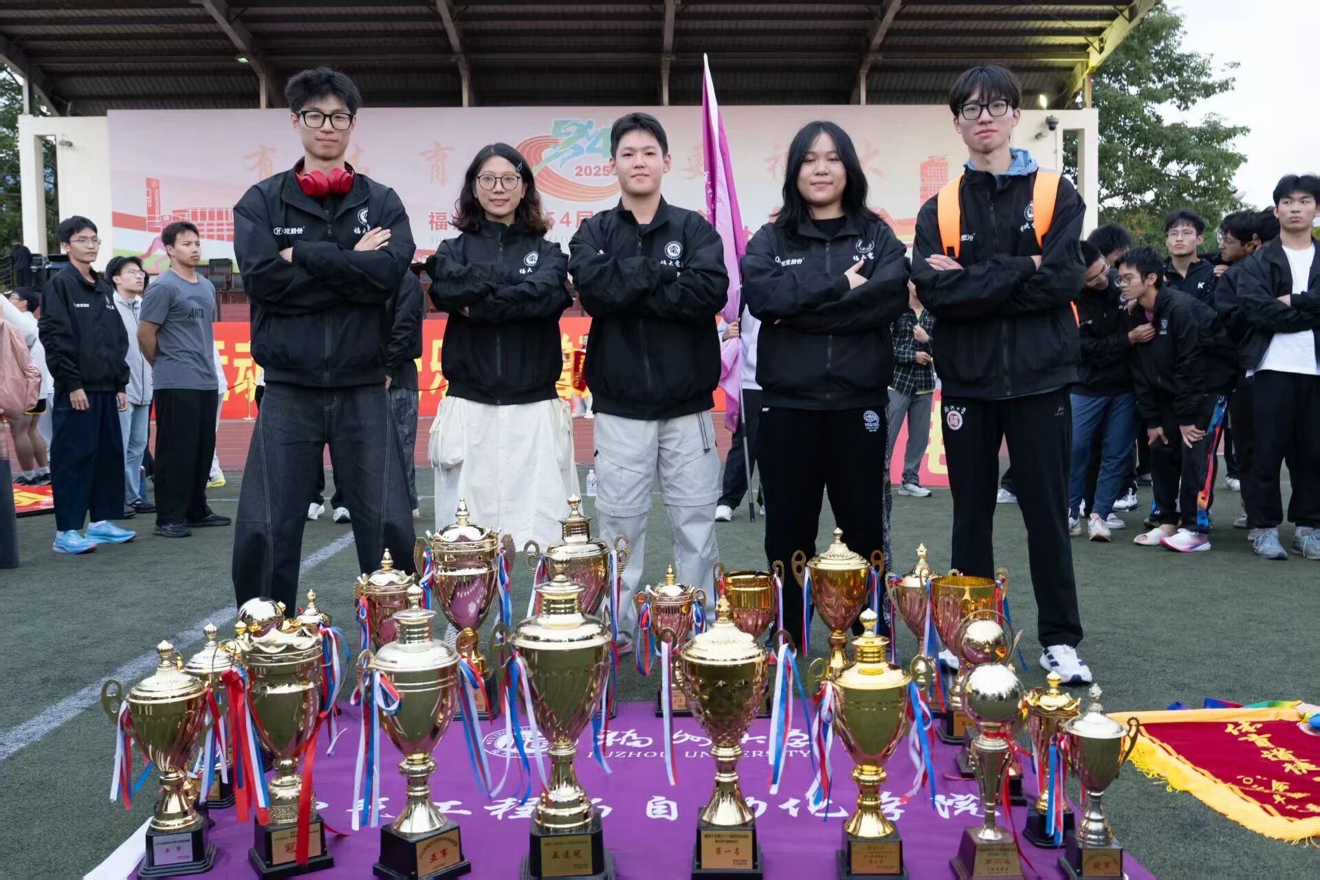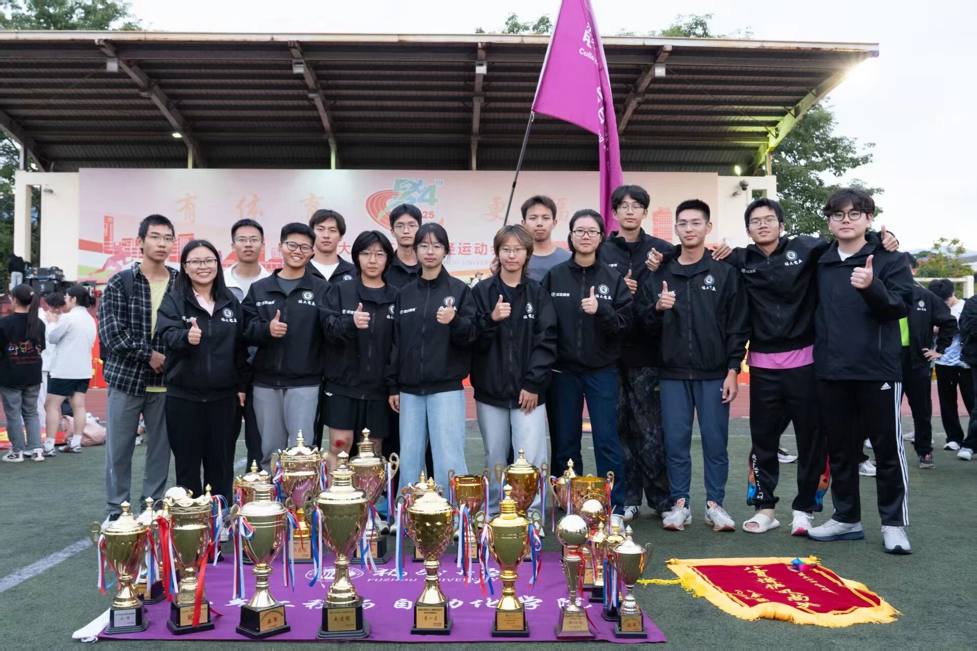 他赞扬了全体运动健儿在赛场上展现的拼搏精神与团队凝聚力;对校党委的正确领导、体育部和校部机关的关心、兄弟学院的陪伴以及厦门宏发校友企业的慷慨支持表示衷心的感谢;回顾学院体育育人发展历史,杜领军副书记向大家分享了学院体育育人的成果与心得,寄语大家“继续传承和发扬‘无体育,不电气’的精神,将其转化为推动学院发展的强大动力,为学校‘有体育,更福大’的文化底色注入新的活力、增添新的色彩!”。