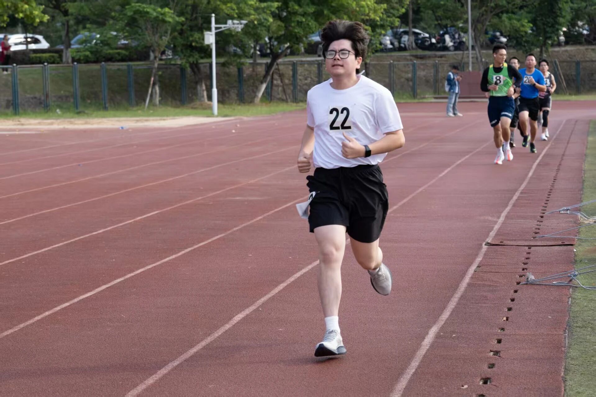 他们在跑道上并肩驰骋,