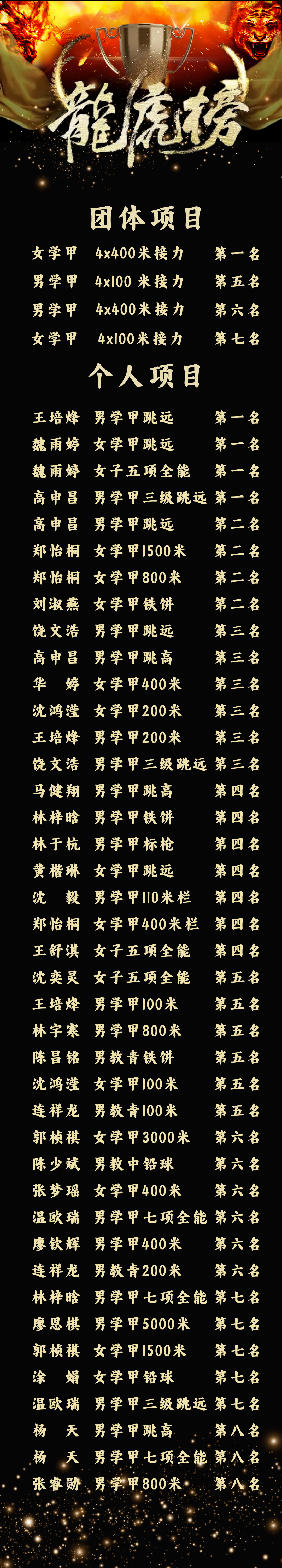 男学甲亚军!女学甲季军!