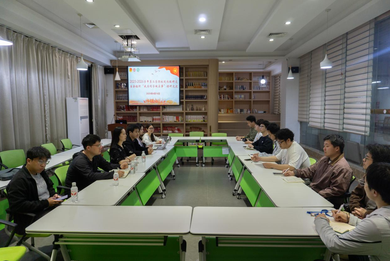 春雨润新程,服务暖人心!四月淅沥的春雨,晕染了校园的满园新绿,新学期的征程也在绵绵春意中稳步前行。为深入落实“我为同学办实事”的服务初心,切实回应广大学子开学阶段的各类需求与期盼,2026年4月16日,校研究生会与院研究生会负责人以及各部门代表相聚学院青年马克思主义研读社,联合举办 2025-2026学年第二学期校院两级研究生会组织“我为同学做实事”调研会。