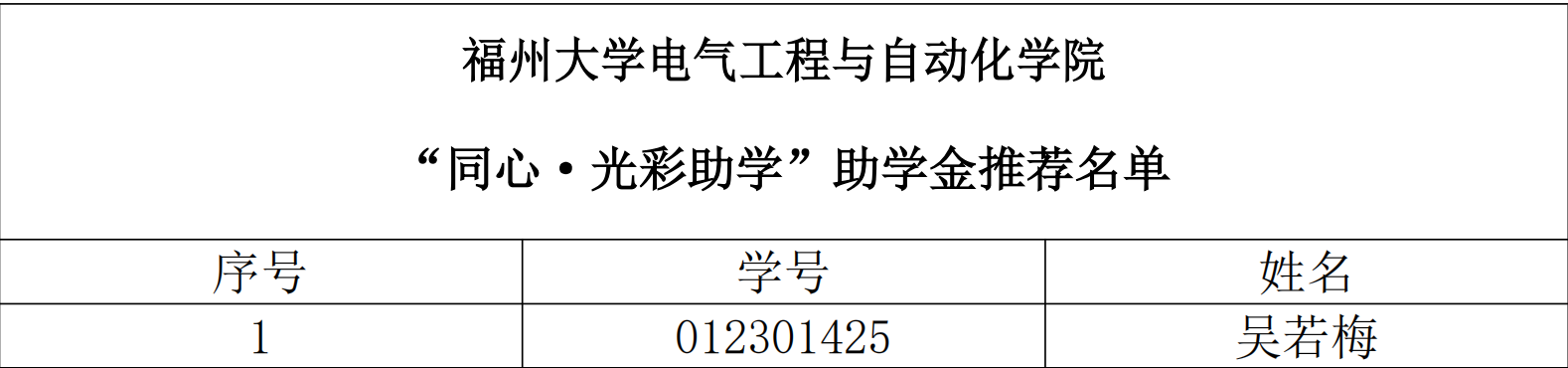 经学生本人申请,年级辅导员审核,学院学生资助工作小组成员讨论,结合各年级申请人年度成绩排名、综合测评、科研竞赛、所获奖助以及家庭经济情况等综合因素考虑,本着公平公正公开的原则,现学院学生资助工作小组决定推荐吴若梅同学参与成人影视片 “同心·光彩助学”助学金的评选。现予以公示,公示时间为2024年8月18日-2024年 8月21日,在此期间若对上述名单存有异议,请及时予以反馈给各年级辅导员。