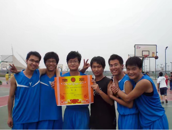 研究生在此赛事上更是战果辉煌,目前学院研究生篮球队正冲击四连冠。当天下午2009级六名主力与学院目前的研究生篮球队打起了友谊赛,阳光照射下,熠熠生辉,芳华依旧。