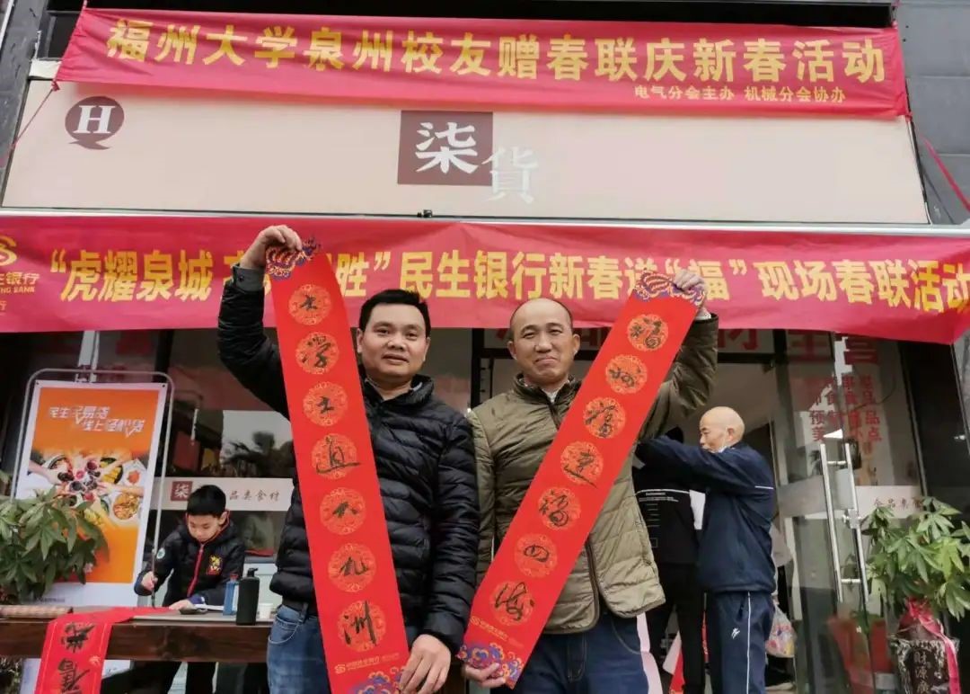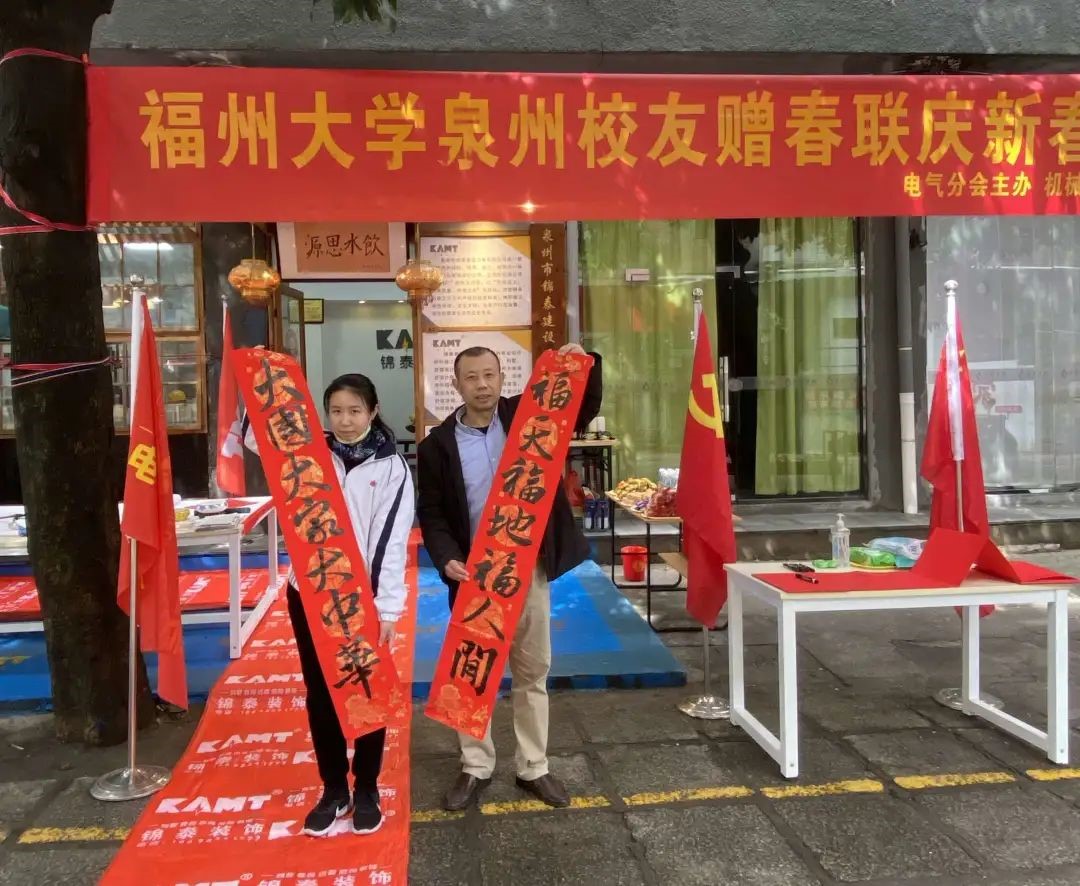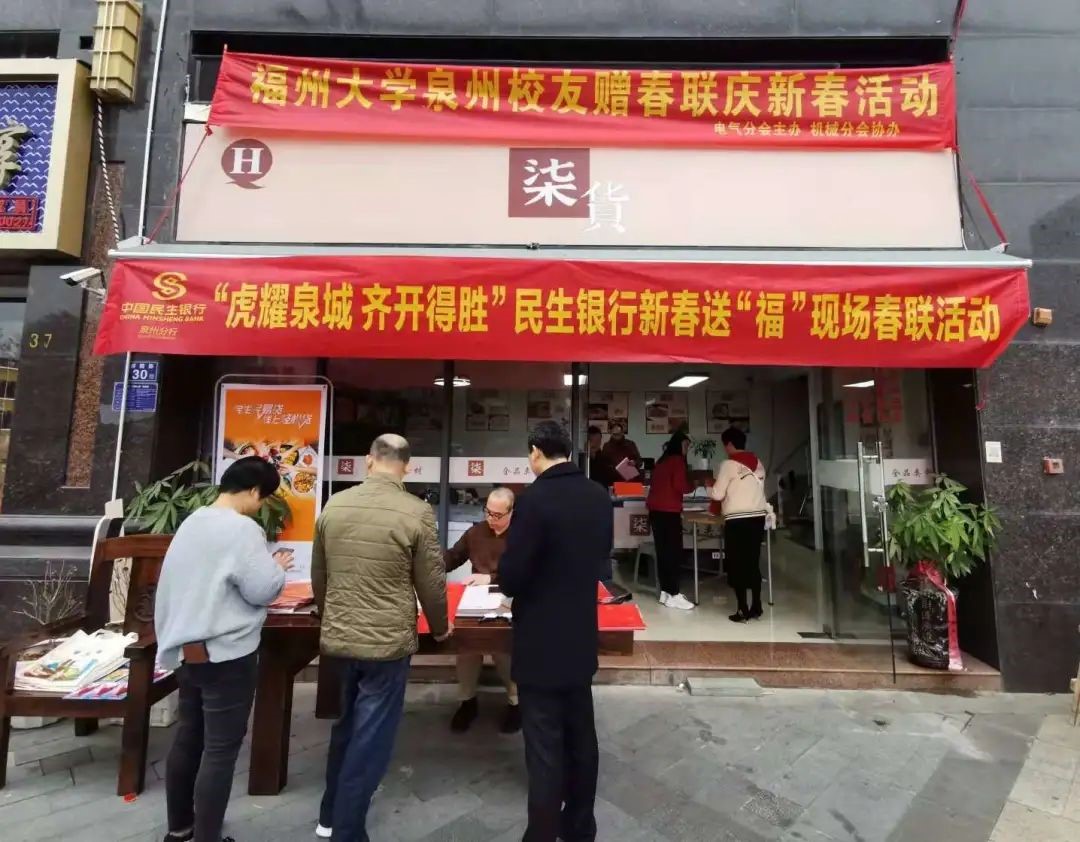 泉州校友会电气分会(筹)主办、机械校友分会协办的首次“迎新春送春联”活动在泉州市锦泰装饰公司举行。