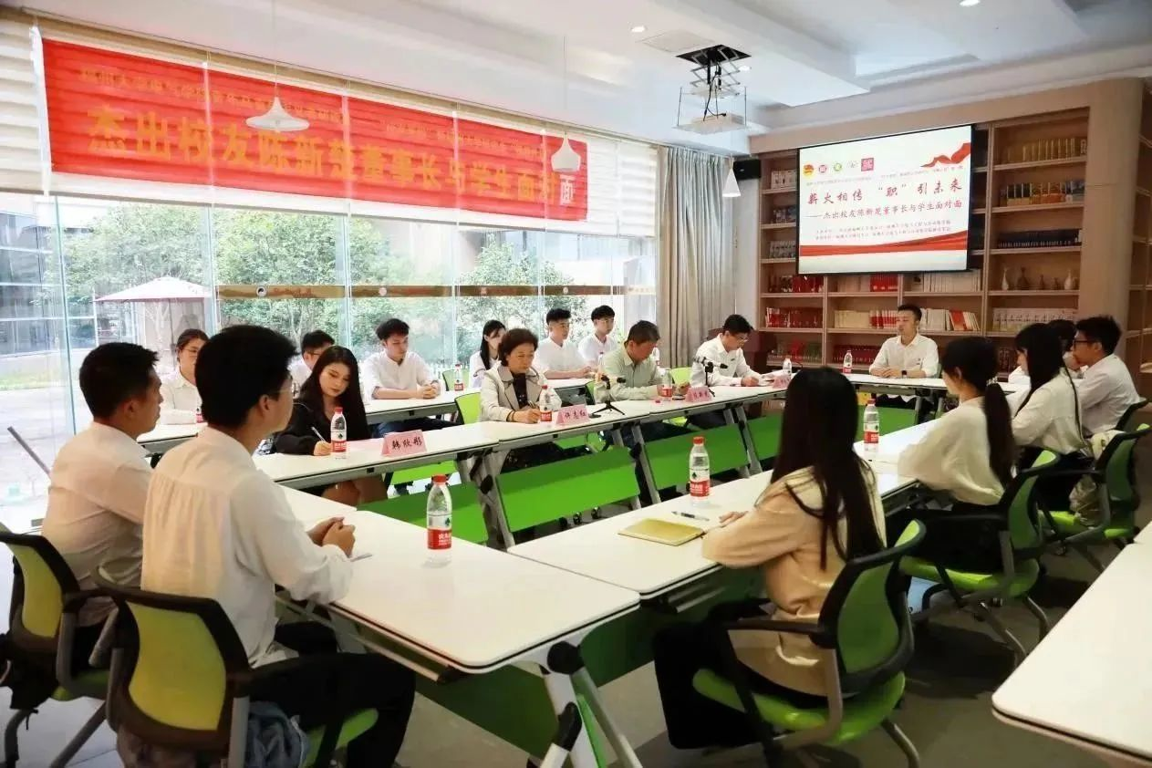 活动中,陈新楚先生领学习近平总书记关于高校毕业生就业创业工作的重要指示精神,并与同学们座谈分享创业故事。