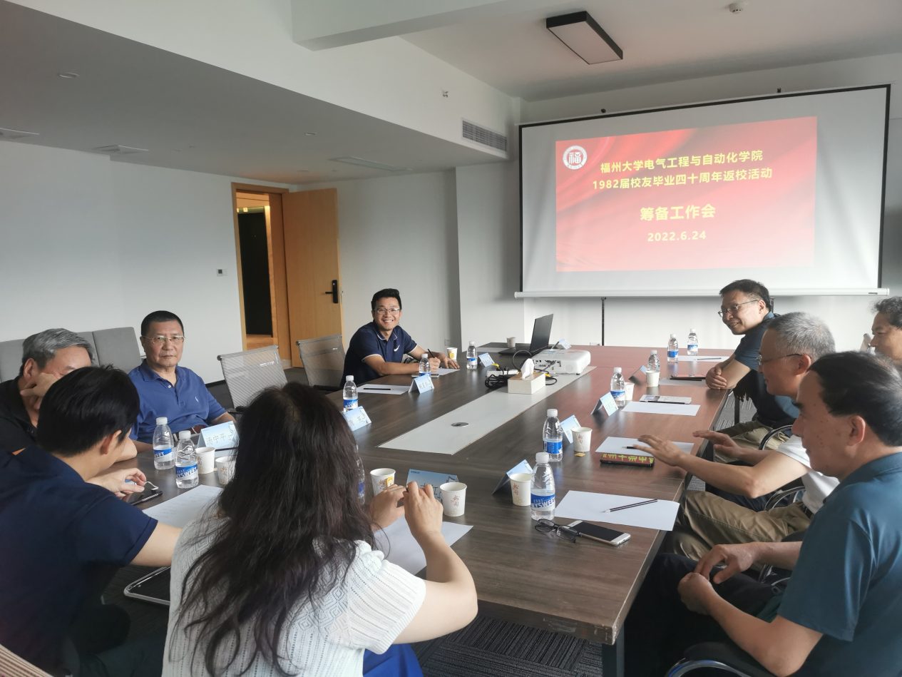 1982届校友毕业四十周年返校筹备工作座谈会在旗山梅园酒店9楼会议室圆满召开。学院党委书记潘志辉老师、院长许志红老师、学院党委副书记鲍星华老师、学院团委书记李金土老师、电气校友会副秘书长许海燕老师以及1982届6个专业(77和78级电机与电器专业、77和78级发电厂及其电力系统专业、77和78级工业电气自动化专业)的班级联络员参加了座谈会。