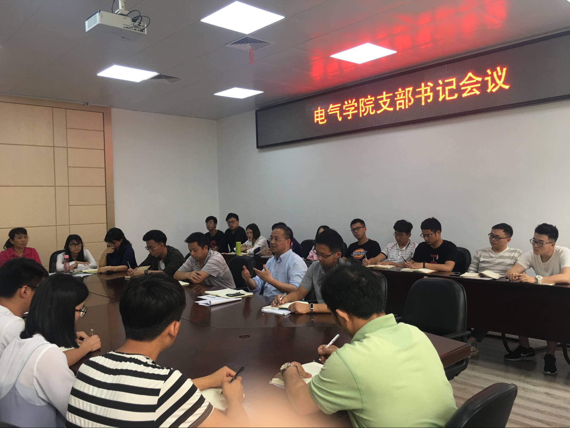 在新楚楼南212召开全体支部书记会议,学院党委书记何希耕、党委副书记黄国辉老师及全体支部书记参加了会议。